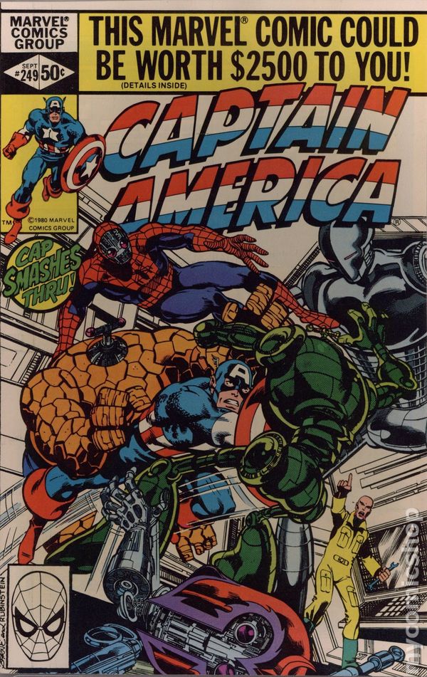 $18 Captain America #250 Comic Book VF/NM 9.0 Marvel 1980 KEY John Byrne Cover $200 Captain America #250 (Marvel Comics October 1980) CGC 9.8 Clicking on the links to the eBay listings shown above and then making a purchase may result in MyComicShop earning a commission from the eBay Partner Network.