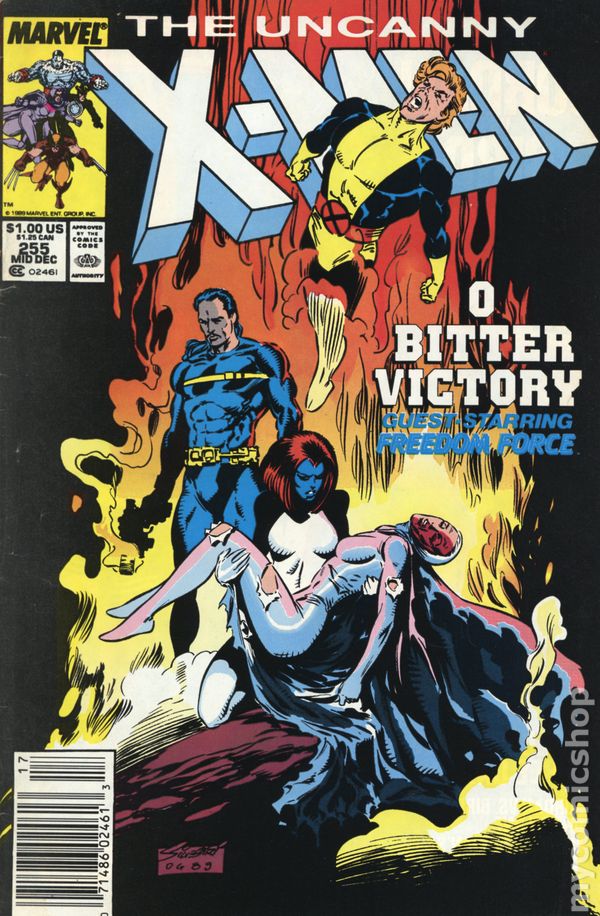 Newsstand Edition. "Crash & Burn!" Part 2 of 2. Story by Chris Claremont. Art and cover by Marc Silvestri and Dan Green. Forge and Freedom Force face the deadly Reavers in a battle not everyone will walk away from. Plus, a familiar face shows up in China. NOTE: 1st appearance of Matsuo Tsurayaba. 36 pgs. Cover price $1.00.