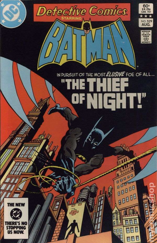 Direct Edition. Cover pencils by Ed Hannigan, inks by Dick Giordano. "The Thief of Night!", script by Doug Moench, pencils by Gene Colan, inks by Dick Giordano; The Batman encounters the black-clad Thief of Night, who steals precious gems to bring to his lover Nocturna; At the same time, Jason Todd considers going back to the circus, since Batman will not take him on as his new partner; continued in Batman 363. "Getting Up III: Lost in the Ozone," script by Joey Cavalieri, pencils by Paris Cullins, inks by Frank Giacoia; Rick helps free Ollie and the rest of the people Ozone glued to the exhibition rooms floor, and then reveals that the man in pursuit of Ozone is his own father, a psychotic scientist. 36 pgs., full color. $0.60. Cover price $0.60.