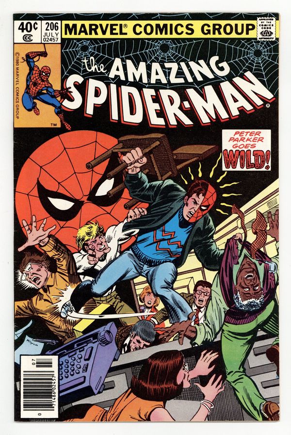 Tags: Spider-Man$8.30Newsstand Edition. "A Method in His Madness!" Script by Roger Stern. Art by John Byrne (breakdowns) and Gene Day (finishes). Cover by Al Milgrom. For the past few weeks, the devious Dr. Jonas Harrow has tormented J. Jonah Jameson with his Mental Attitude Response Variator (MARV) ray! And after forcing the Daily Bugle's publisher to have a nervous breakdown, the twisted doctor turns his attention to the city editor: Joe Robertson! While blasting Robbie (from afar) with the MARV ray, Dr. Harrow decides to radiate the entire Bugle city room! But the mad scientist is not aware that Spider-Man's alter-ego has stopped by for a visit! One thing leads to another...and the web-slinger, Jonah, and Jonas rendezvous for a meeting of the minds! May the craziest man win! (Note: This is one of only three issues John Byrne penciled for the Amazing Spider-Man title (1st series): issues 189, 190, and 206.) 36 pgs. Cover price $0.40.