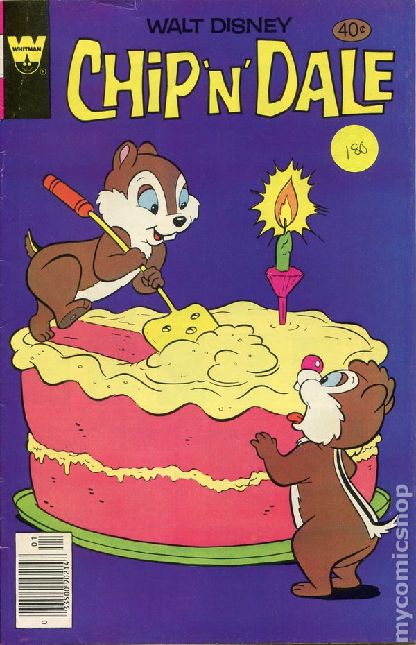 Whitman edition, reprints; Cover by Larry Mayer. Stories by unknown. Pencils by Cliff Voorhees. Featuring the tales "Fountain of Strength," "Westward Whoa," "Nutty Birthday" and "The Lost Umbrella"! Starring Chip 'n' Dale, Buddy McBug, Thumper, Brer Bear, Big Bad Wolf, Three Little Pigs, Cousin Sage, Pack Rat, Zip 'n' Zap, Jiminy Cricket and Wes Weasel! 32 pages, full color. Cover price $0.60.