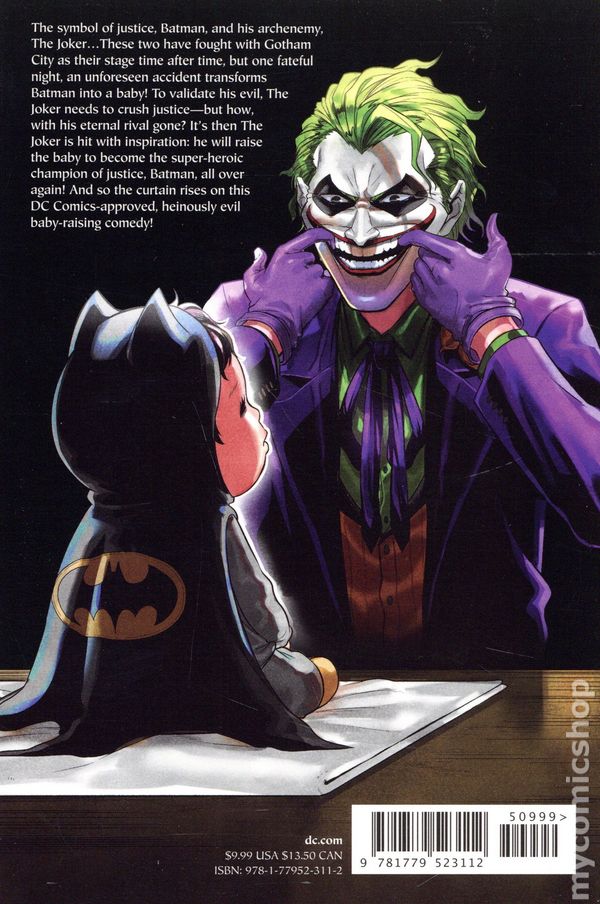 Volume 1 - 2nd and later printings. Written by Satoshi Miyagawa. Art and cover by Keisuke Gotou. Translated by Sheldon Drzka. The Joker like you've never seen him before...as a single father?! After a fateful encounter with Batman that results in the Dark Knight de-aging to a baby, Joker takes it upon himself to raise the child into the crusader of justice! But does the Clown Prince of Crime really understand what it means to be Batman--or, more importantly, what it means to raise a baby all by yourself? Everyone needs a babysitter who makes them laugh, right? Softcover, 5-in. x 7-in., 160 pages, B&W. Cover price $9.99.