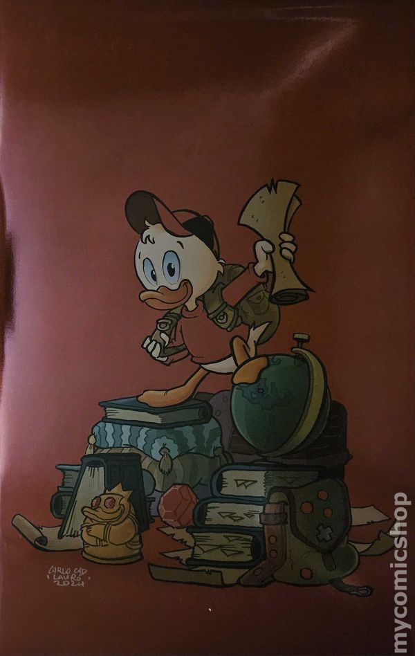 Limited 1 for 15 Retailer Incentive Variant Cover. Written by Brandon Montclare. Art by Tommaso Ronda. Cover by Carlo Lauro. The ridiculously wealthy Scrooge McDuck is the most famous resident of Duckburg-but his fortune goes far beyond mere currency. To his young nephews, 'Unca' Scrooge is rich in something even more important than money stories! Whether it's the saga of how he dug his first million out of the Klondike, or the many times he saved his lucky Number One Dime from the clutches of Magica De Spell, the feisty tycoon is a font of mesmerizing tales and Huey, Dewey, and Louie can't get enough! But even as they pester their Uncle to share more yarns of his legendary quests and globetrotting treasure hunts, the three boys are about to learn that the most valuable item Scrooge McDuck owns isn't locked up in his absurdly capacious Money Bin -it's the lifetime of wisdom he's got stockpiled inside his head! Writer BRANDON MONTCLARE (Moon Girl and Devil Dinosaur, Rocket Girl) and artist TOMMASO RONDA (Kalya) uncover a vein of solid gold adventures with Duck Tales #1 burnished by billion-dollar covers from IVAN BIGARELLA, FRANCESCO TOMASELLI, CARLO LAURO, and ALAN QUAH! 32 pages, full color. Cover price $9.99.