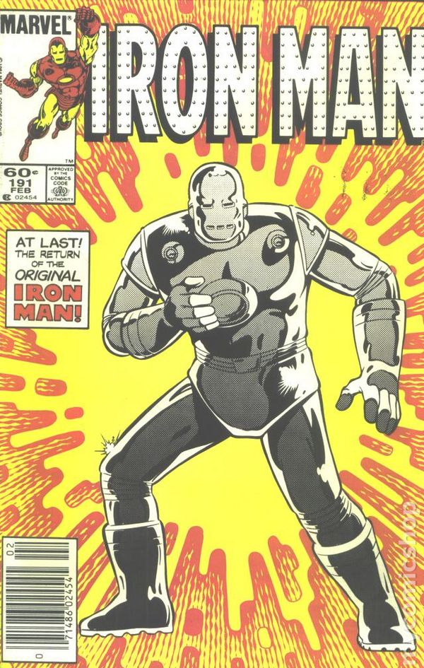 Newsstand Edition. "The Vengeance of Vibro!" Part 2 of 2. Script by Denny O'Neil. Pencils by Luke McDonnell. Inks by Steve Mitchell. Cover by Luke McDonnell and Steve Mitchell. Vibro wants another shot at the golden avenger! And after breaking out of jail, the new super-villain gets his wish! In a small town north of Los Angeles, Vibro clashes with Shell-Head again! But this time Morley and Tony have a plan to help Rhodey! And it involves the San Andreas Fault --- the source of Vibro's power! If Iron Man can draw Vibro away from the fault, he'll draw closer to victory! Cameo appearances by Clytemnestra Erwin, Barton Grimes, and Percy Grimes. (Notes: Vibro returns in Iron Man 191. This issue includes a special one-page Marvel subscription advertisement featuring Alpha Flight members: Aurora, Marrina, Puck, and Sasquatch; with original art by John Byrne.) 32 pages. Cover price $0.60.