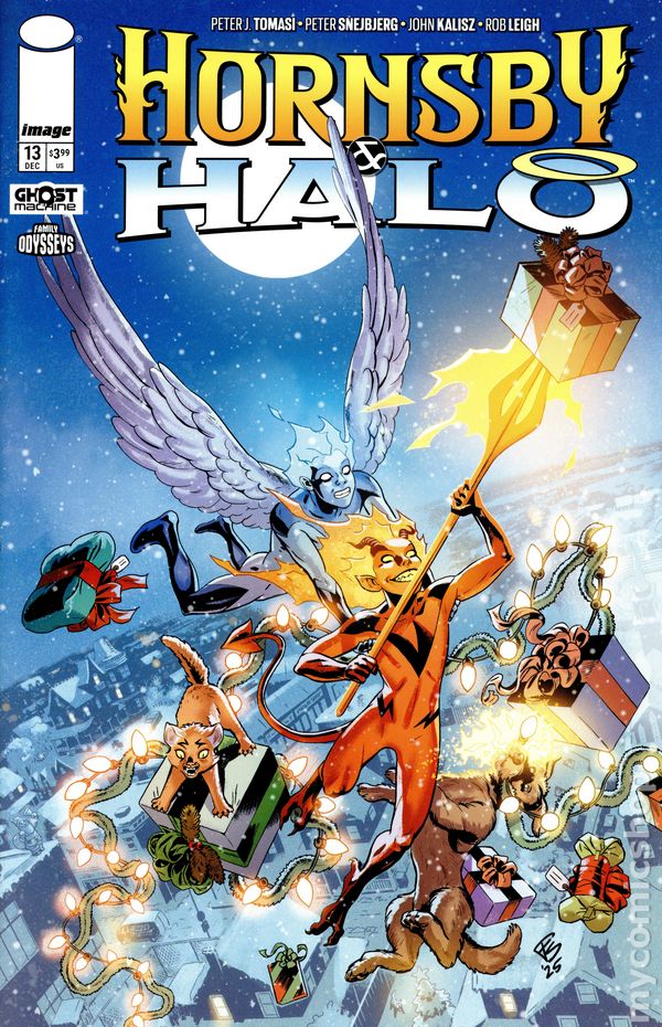 Written by Peter J. Tomasi. Art by Peter Snejbjerg, John Kalisz. Cover by Christian Alamy, John Kalisz. A blizzard hits the town of Warwick…but it's hardly a natural occurrence, as rogue agents of Heaven and Hell try to disrupt the tenuous peace between realms, using Rose Hornsby and Zack Halo as pawns. The storm's 'ethereal' qualities raise the dead from their graves to reclaim their personal valuables stolen by the Halo family before being buried. And Zach and Rose discover the hard way that 'finders keepers' won't deter angry zombies! 32 pages, full color. Rated T Cover price $3.99.