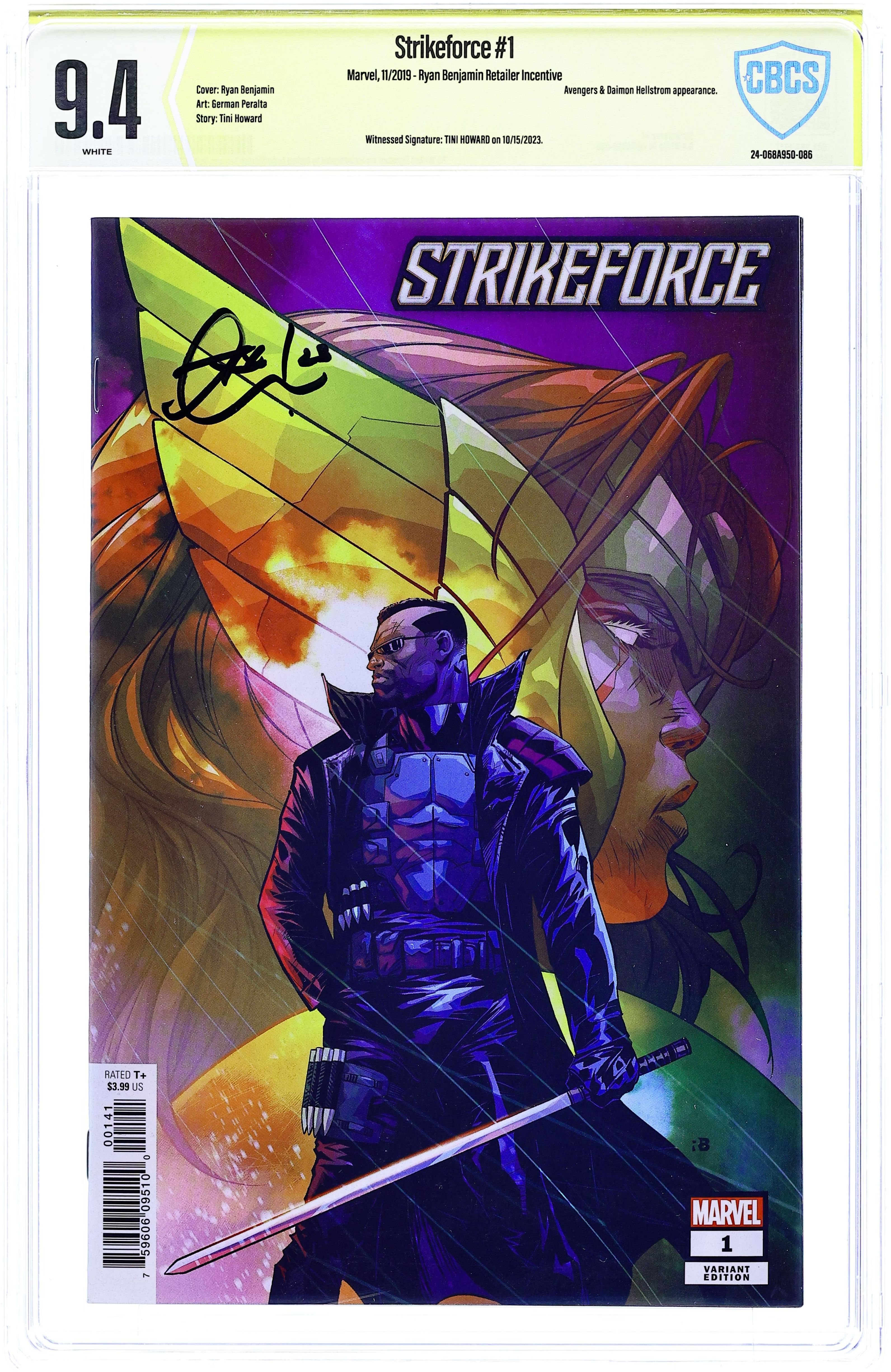 NYCC Exclusive Variant by John Tyler Christopher. Limited to 2000 copies. Written by Tini Howard. Art by German Peralta. NO COMPROMISE. NO MERCY. ALL NEW, ONGOING SERIES! From the dark minds of rising stars Tini Howard and Germán Peralta comes a tale of the underside of the Marvel Universe! A new threat is secretly taking over the planet -- and the more people who know about it, the more powerful the threat becomes. Blade dealt with this threat once before, and hoped to never have to again. He can't bring the Avengers in on this -- not just for their own safety, but for the safety of everyone on Earth. So he must recruit a team of heroes accustomed to darkness -- a strikeforce. Blade, Angela, Spider-Woman, Wiccan, the Winter Soldier, Monica Rambeau and Daimon Hellstrom join forces to fight the fights that no other Marvel team can take on! Rated T+
