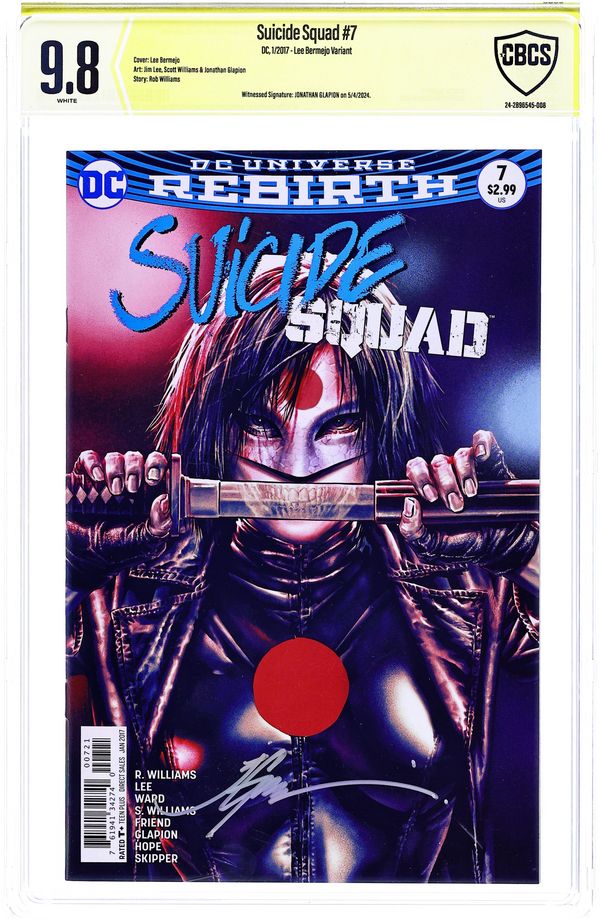 SECOND PRINTING Written by ADAM GLASS. Art by FEDERICO DALLOCCHIO, RANSOM GETTY and SCOTT HANNA. Cover by RYAN BENJAMIN. They're a team of death-row super villains recruited by the government to take on missions so dangerous - they're sheer suicide! Harley Quinn! Deadshot! King Shark! Defeated and imprisoned, they're being interrogated about their mission - and about who's pulling the strings behind this illegal operation. Who will be the first to crack under the pressure? Cover price $2.99.