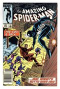 Direct Edition. "Endings!" Part 3 of 3. Plot by Roger Stern. Script by Tom DeFalco. Art by Ron Frenz (breakdowns) and Klaus Janson (finishes). Cover by Ed Hannigan and Klaus Janson. After a pumpkin bomb sets his hideout ablaze, the furious Hobgoblin drives away in his battle van! But unbeknownst to the goblin, the web-slinger is holding on for dear life underneath! When Spider-Man crawls inside...the ferocious fight begins! As the Hobgoblin and the wall-crawler trade blows, the battle van careens into the Hudson River! Is the Hobgoblin going to sleep with the fishes? Only time will tell. Several hours later Spider-Man is drawn towards a mammoth citadel in Central Park...and then suddenly disappears! Cameo appearances by Harry Osborn, J. Jonah Jameson and Joe Robertson. (Notes: The Hobgoblin returns briefly in Amazing Spiderman 255. Tom DeFalco begins his 3-year run as the writer of the Amazing Spider-Man title. Likewise, Ron Frenz begins his 3-year run as the primary penciler. This issue includes a full-page ad for the first Marvel Super Heroes Secret Wars Limited Series (where the web-slinger appears next). This three-part story was reprinted in Marvel Tales 259, 260, and 261.)36 pgs. Cover price $0.60.