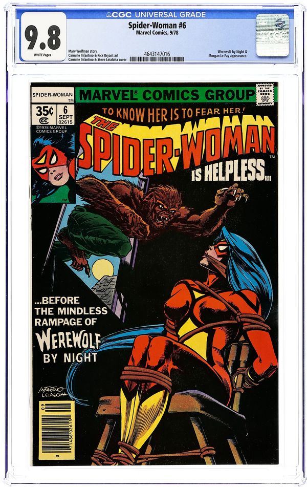Cover pencils by Carmine Infantino, inks by Steve Leialoha. End of a Nightmare!!, script by Marv Wolfman, pencils by Carmine Infantino, inks by Rick Bryant; Spider-Woman [Jessica Drew] vs. Werewolf By Night [Jack Russell]. 32 pgs. $0.35. Cover price $0.35.