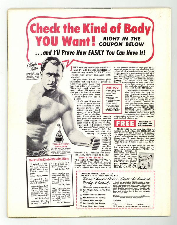Cover pencils by Carmine Infantino, inks by Joe Giella. First appearance of Captain Boomerang in Here Comes Captain Boomerang!, script by John Broome, pencils by Carmine Infantino, inks by Murphy Anderson; W.W. Wiggins, the head of a game company, hires Digger Harkness to be his boomerang expert; Harkness becomes Captain Boomerang, commits crimes, and battles Flash. The Madcap Inventors of Central City!, script by Gardner Fox, pencils by Carmine Infantino, inks by Joe Giella; Winky, Blinky, and Noddy build a machine and start an inventing business. Letter to the editor from Fox himself! Ad for Giant Superman Annual. Comparative Speed Records fact page. Training Secrets Manual ad featuring Bob Cousy, Doak Walker, Carmen Basilio, and Kyle Rote. 36 Pages, Full Color. Cover price $0.10.