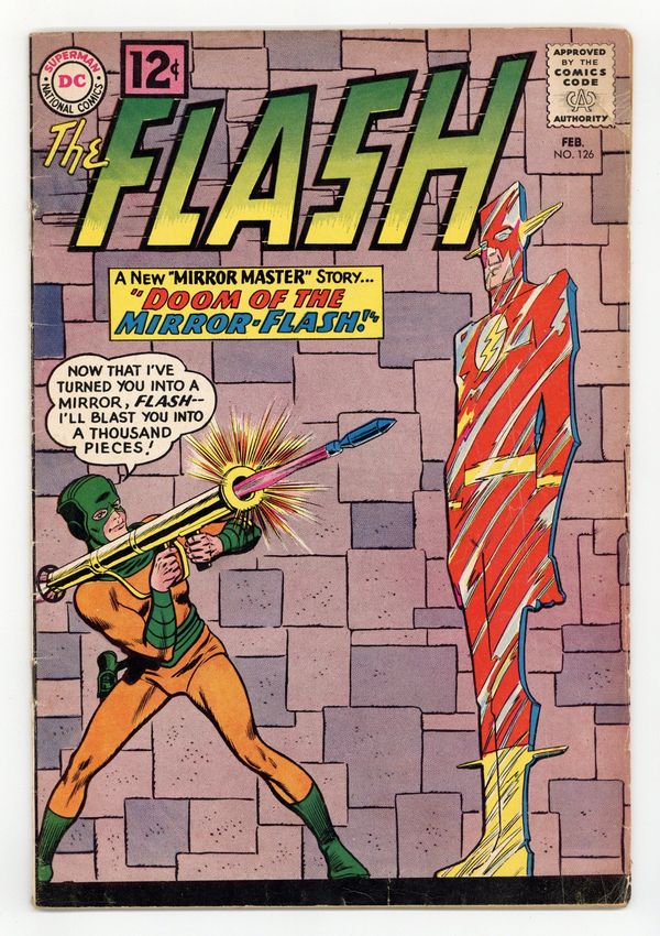 Cover pencils by Carmine Infantino, inks by Joe Giella. 80-page Giant G-34. "How I Draw The Flash," a two-page feature by Carmine Infantino. Flash stories reprinted in this issue are: 1) "Beware the Atomic Grenade!"; 2) "The Mirror Master's Magic Bullet!"; 3) "The Man Who Claimed the Earth!", in which a spaceman lands on Earth and decrees the planet to be a colony of his native world; 4) "Return of the Super-Gorilla!"; and "Plight of the Puppet-Flash!", which which Abra Kadabra turns Flash into a puppet. All stories drawn by Carmine Infantino with inks by Murphy Anderson or Joe Giella. Green Lantern ad. Atom ad. 84 Pages, Full Color. Cover price $0.25.