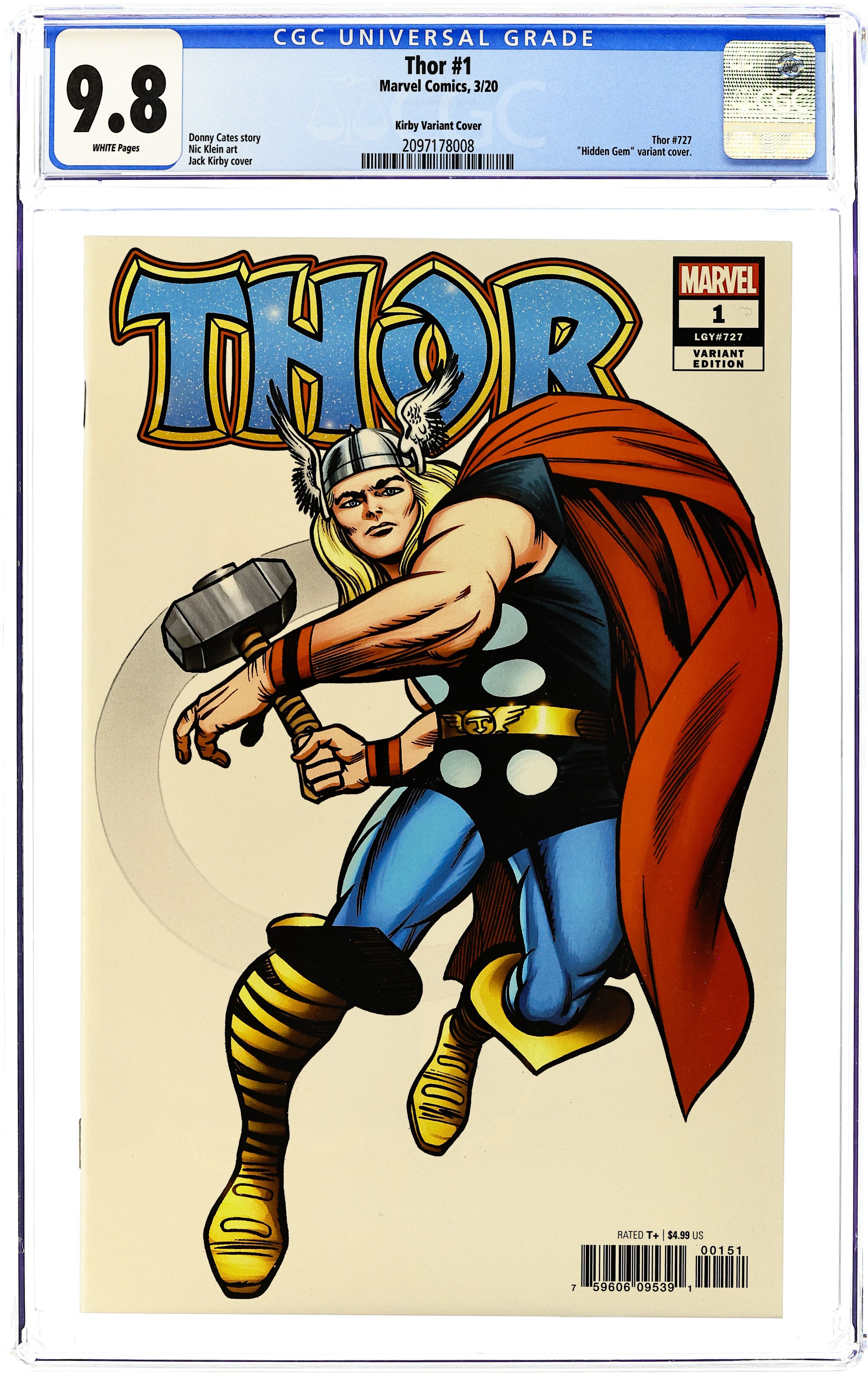 Limited 1 for 100 Retailer Incentive Variant Cover. Written by Donny Cates. Art by Nic Klein. Cover by Jack Kirby. A BRAND-NEW, SUPERSTAR CREATIVE TEAM TAKES THE KING OF ASGARD TO NEW REALMS OF GLORY!The prince is now a king. All Asgard lies before Thor, the God of Thunder. And after many months of war, the Ten Realms are finally at peace. But the skies above the Realm Eternal are never clear for long. The Black Winter is coming. And the God of the Storm will be powerless before it. 36 pages, full color. Rated T+ Cover price $4.99.