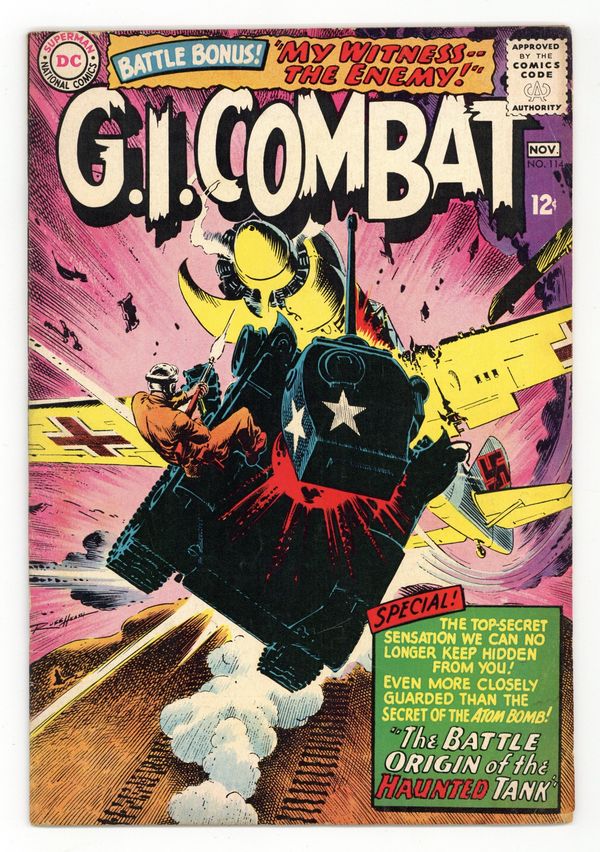 Cover by Russ Heath. Written by Robert Kanigher. Art by Russ Heath and Jerry Grandenetti. The Haunted Tank begins a fight in one war and finds itself in another in the startling..."Battle of Two Wars!" by Robert Kanigher and Russ Heath. Plus: Gunner and Sarge in "A Statue for Sarge!" by Kanigher and Jerry Grandenetti, reprinted from Our Fighting Forces (1954) #48. 36 Pages, Full Color. Cover price $0.12.
