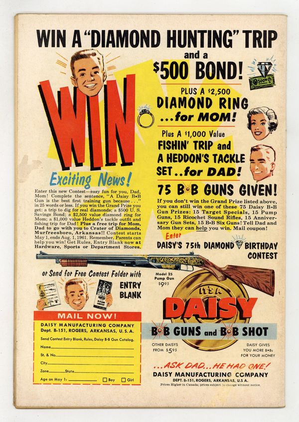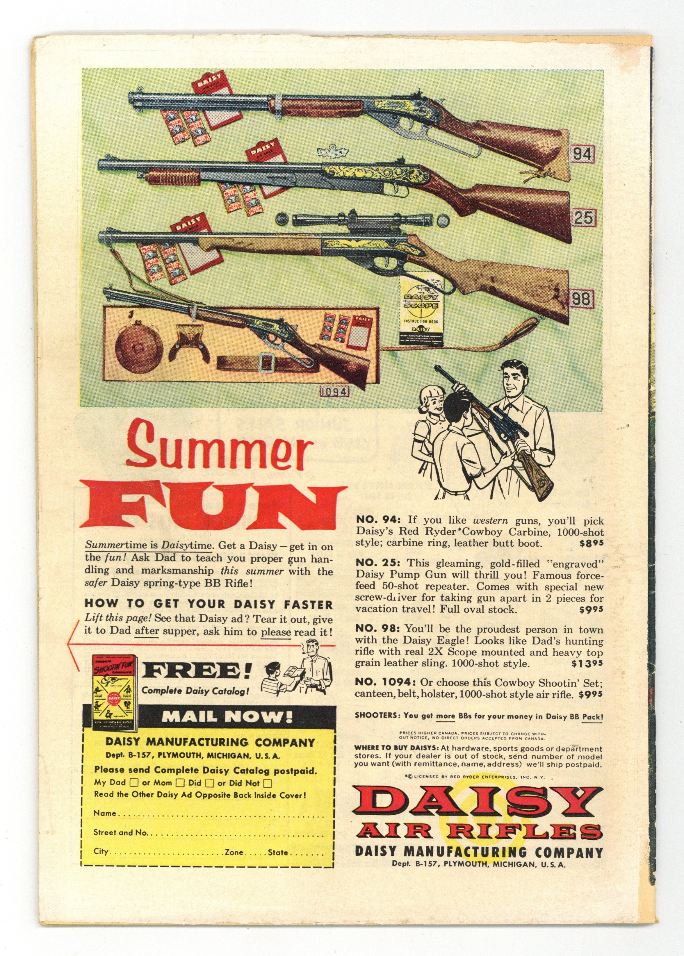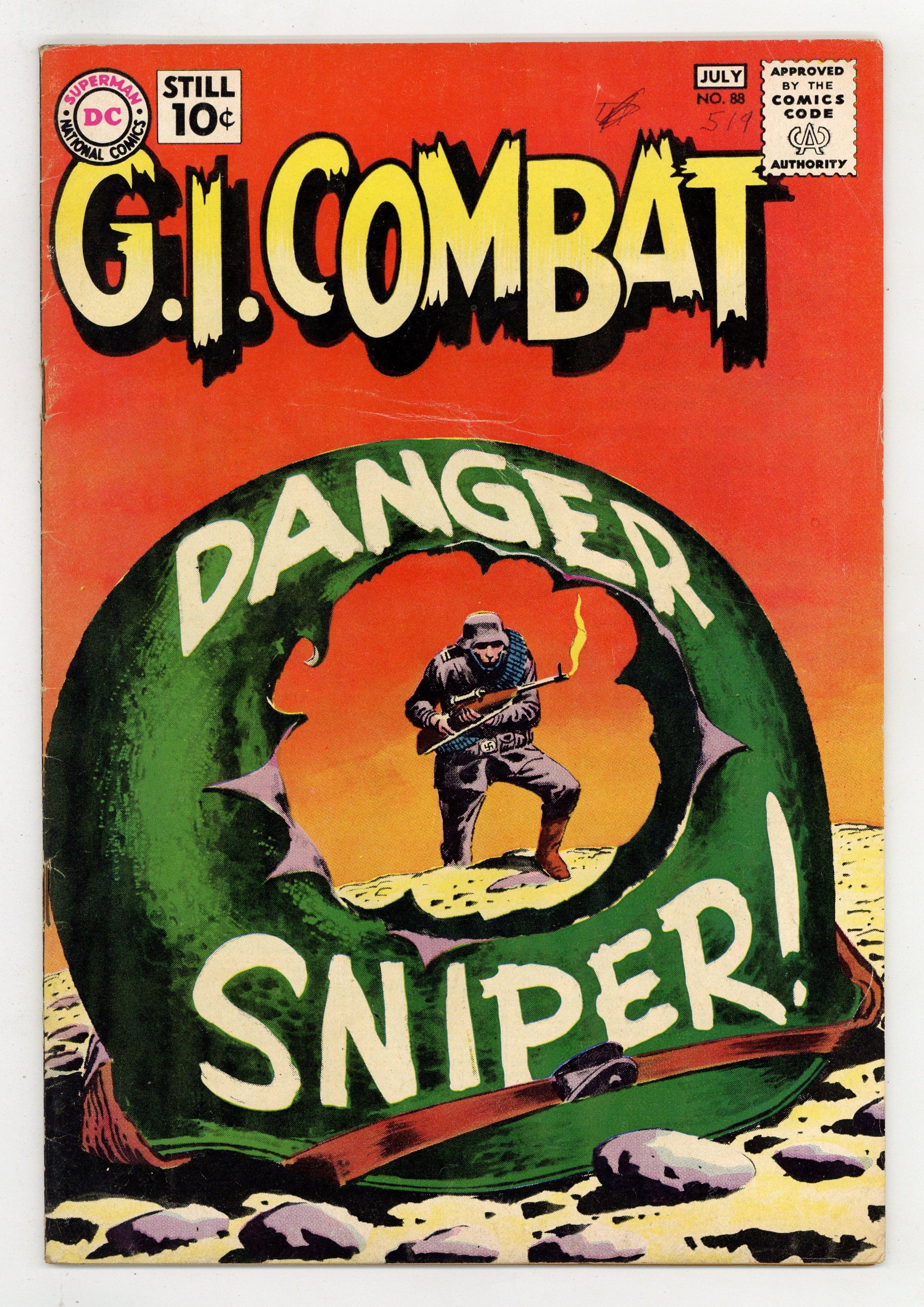 Cover by Jerry Grandenetti. Written by Bob Haney, Bill Finger and Ed Herron. Art by Ross Andru, Russ Heath, Arthur Peddy and Mike Esposito. War front fury! Battlefield adventures! In this issue: "The Sniper!" by Bob Haney, Ross Andru and Mike Esposito; "The Walking Weapon!" by Bill Finger and Russ Heath; "No-Man's Land!" by Haney, Andru and Esposito; "Tank Busters!" by Ed Herron and Arthur Peddy; and 2-page article "Action Behind the Lines." 36 Pages, Full Color. Cover price $0.10.