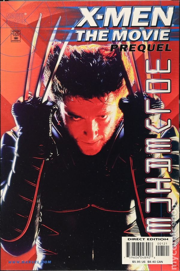 Newsstand Edition. Hugh Jackman Photo Cover. Story by Jay Faerber. Art by Karl Waller and Mark McKenna• THE SCOOP: Find out how destiny leads Wolverine to the Children of the Atom in the official prequel to X-Men The Movie! • THE STORY: An amnesiac man is wandering through the snow swept Canadian wilderness, attempting to discover who he really is. His name is Logan—but instead of uncovering his true identity, he'll encounter a beautiful damsel in distress! Who are the agents following her... and will the mutant codenamed Wolverine be able to save this woman from their clutches? More importantly, should he save her? Find out in the comic book that will lead you directly to Wolverine's first appearance in the movie everybody is talking about!• THE FORMAT: This 48-page one-shot has no ads. Cover price $5.95.