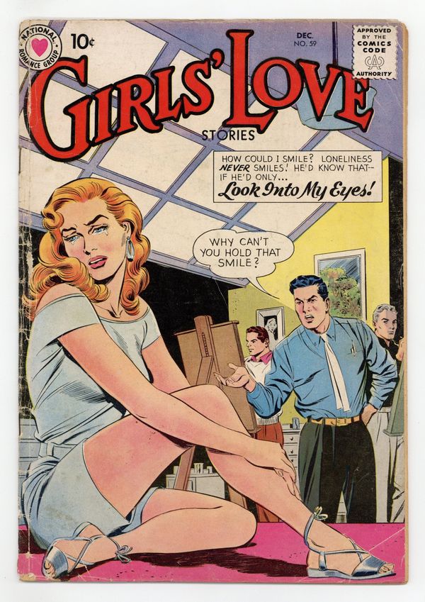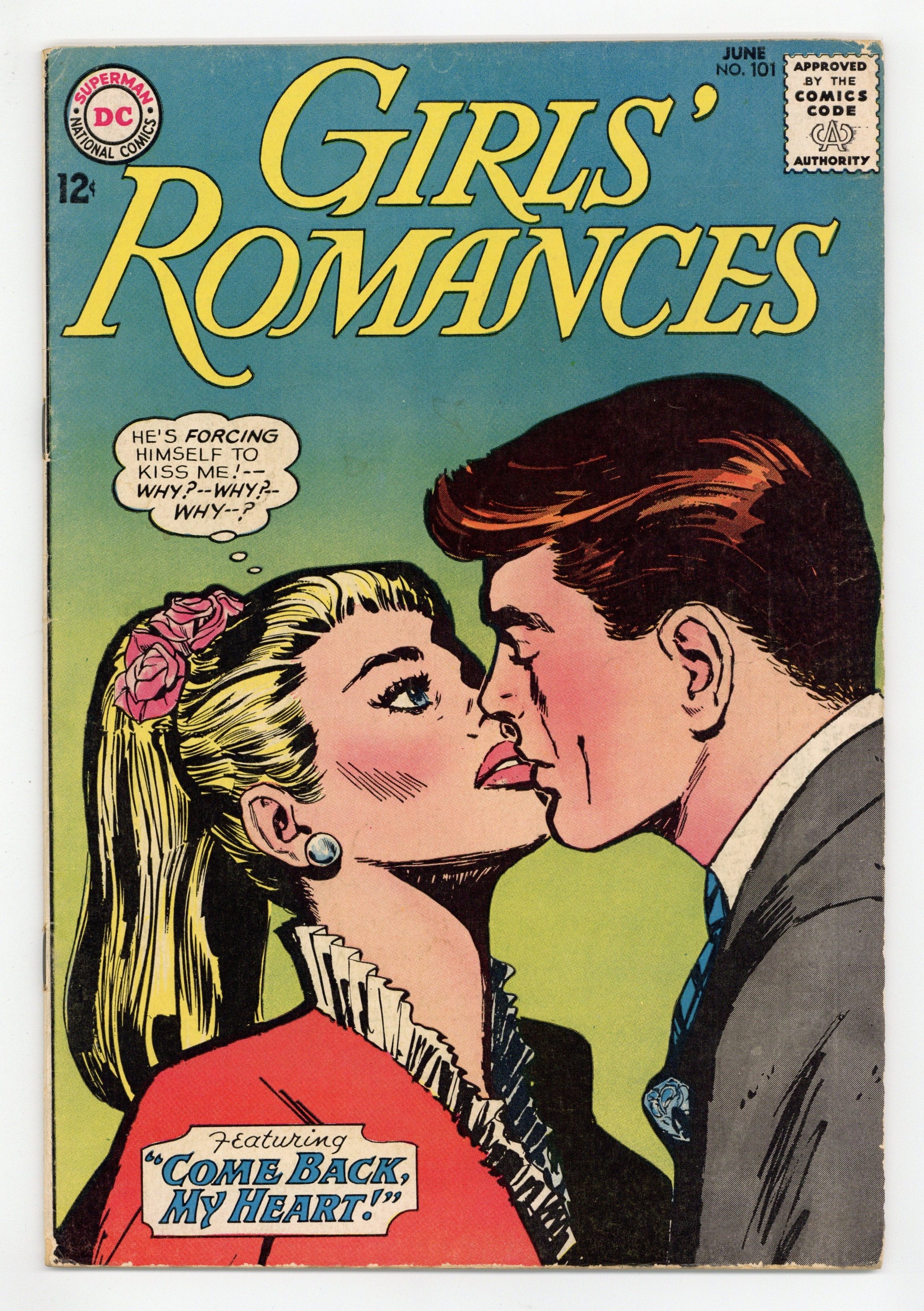 His eyes told her her masquerade was over! Now she could never reveal the secret in her..."Hidden Heart," the cover-featured 9 page story pencilled by Mike Sekowsky. Plus: 7 page story "Call Me Darling"; 7 page story "Unmarried Sister"; 2 page Julia Roberts' Romance Report letters page; 7 page story "I Inherited a Sweetheart" pencilled by Mike Sekowsky. Cover pencils by Mike Sekowsky. Cover price $0.10.