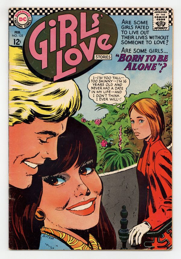 Are some girls fated to live out their lives without someone to love? "Born to be Alone" is the cover-featured 15 page story pencilled by Jay Scott Pike. Plus: 13 page story "Fight for the One You Love" drawn by Jerry Grandenetti; 2 page Mad Mad Modes for Moderns story; 1 page You Can be Beautiful beauty tips written by Jill Taylor and pencilled by John Romita, Sr.; 1 page From Barbara Miles, with Love letters page. Cover by Jay Scott Pike. Cover price $0.12.