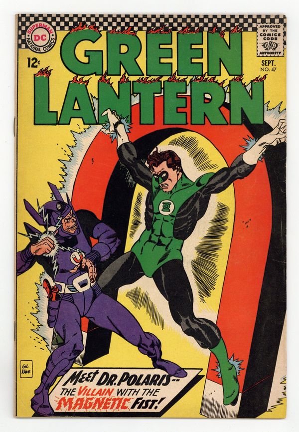 Cover art by Gil Kane. Green Lantern Lives Again!, script by John Broome, pencils by Gil Kane, inks by Sid Greene; Hal's lifeless body disappears from Oa, and ends up in 5700 A.D., where he must help stop a red virus; When he gets sent back home, he battles Dr. Polaris and saves Pieface. 36 pgs. $0.12. Cover price $0.12.