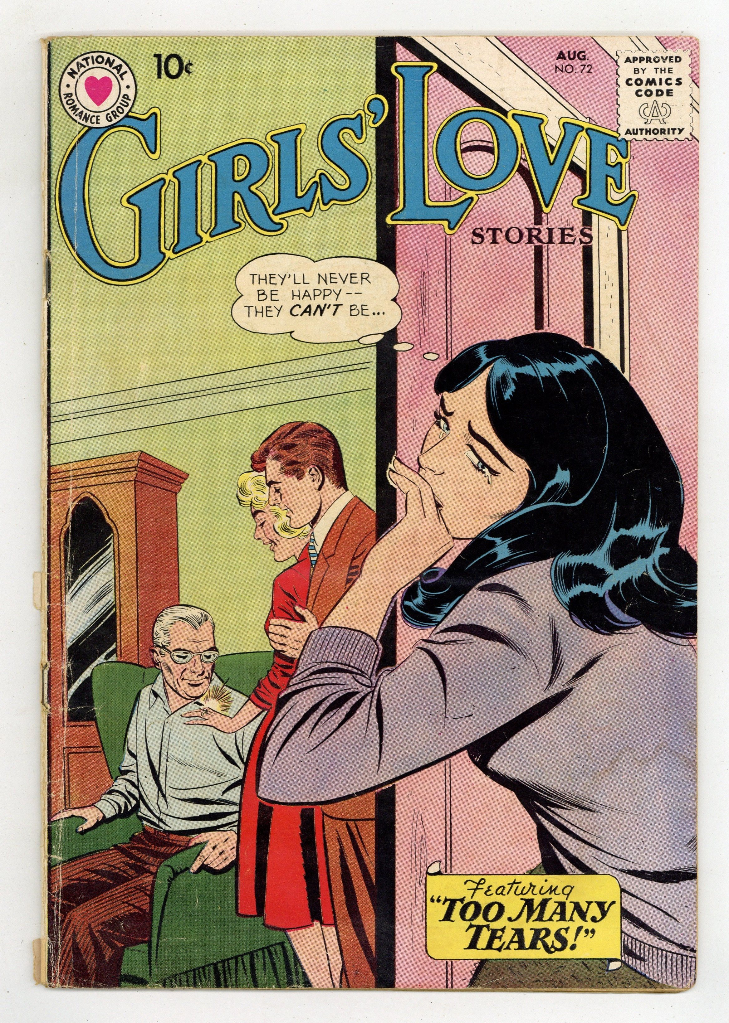He thinks she's only a child -- too young to fall in love! But he's wrong...so wrong! "One Wish for Love" is the cover-featured 8 page story. Plus: 7 page story "Don't Weep for Me"; 7 page story "Window to Heartbreak" drawn by Bernard Sachs; 2 page text story "Substitute Bride"; 7 page story "The Man We Loved" pencilled by Mike Sekowsky. Cover price $0.10.