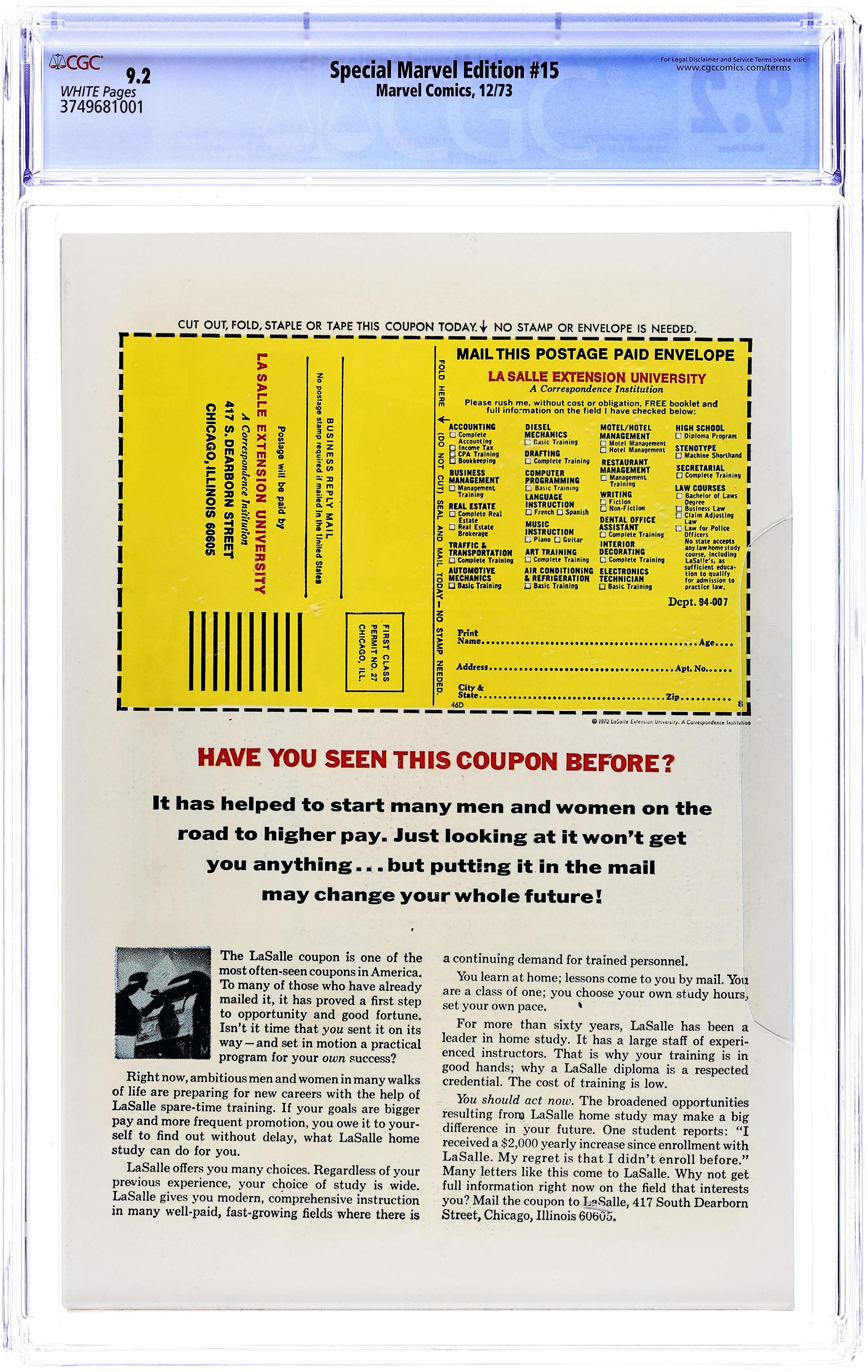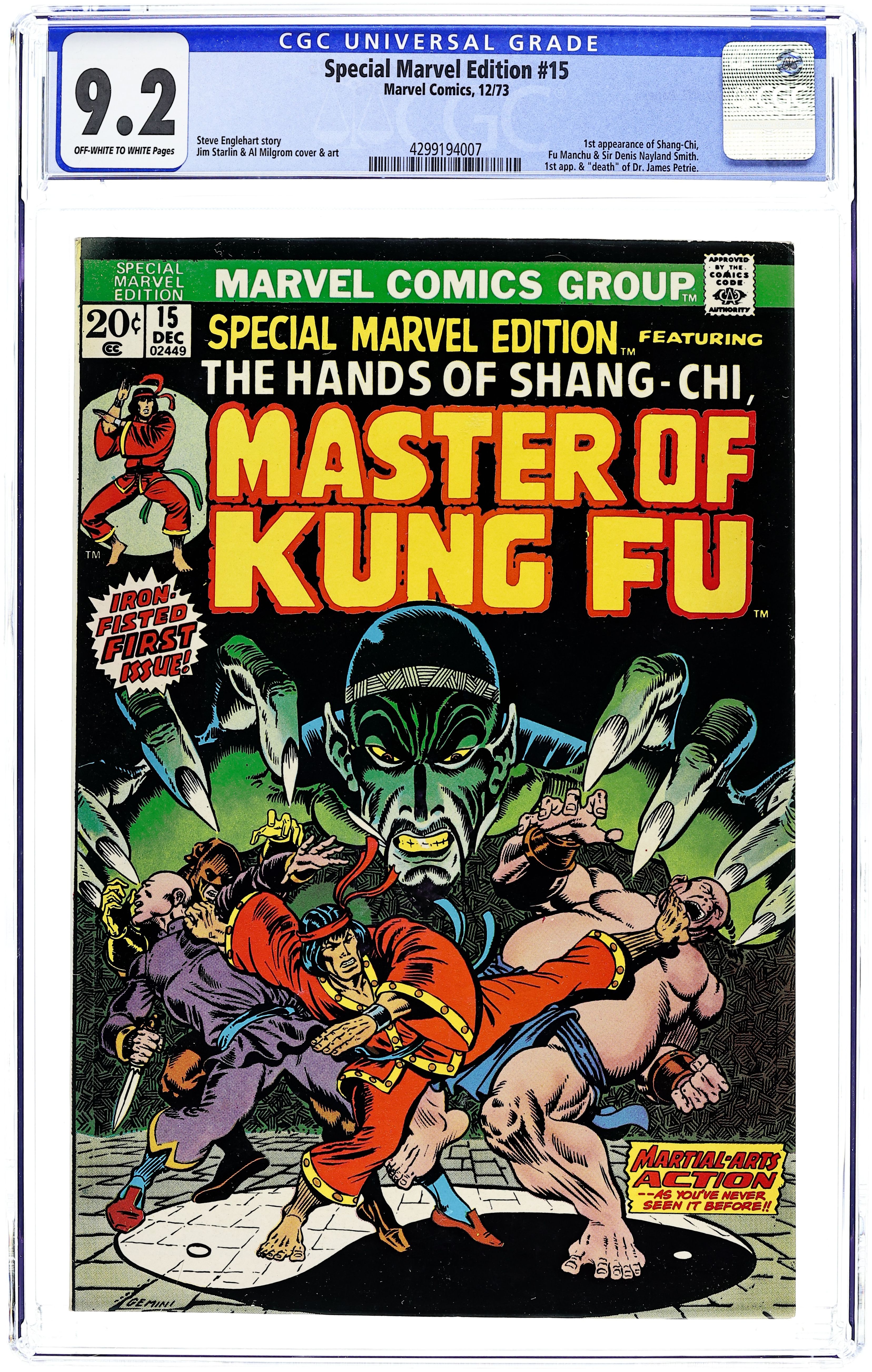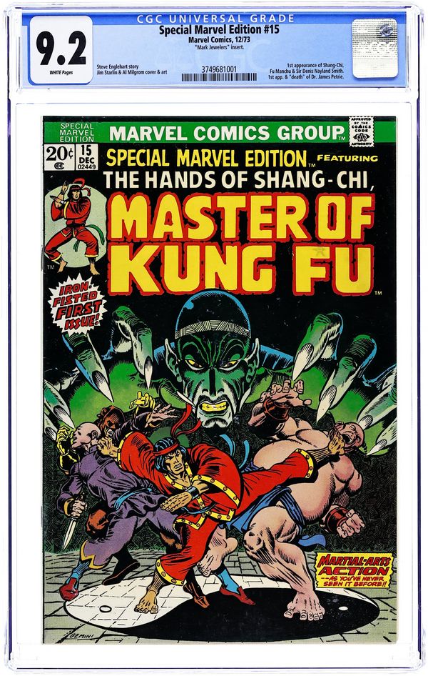 Mark Jeweler Advertisement Insert Variant. First appearance of Shang Chi, Master of Kung Fu. Jim Starlin art. Steve Englehart writer/color. Martial arts action. Cover price $0.20.