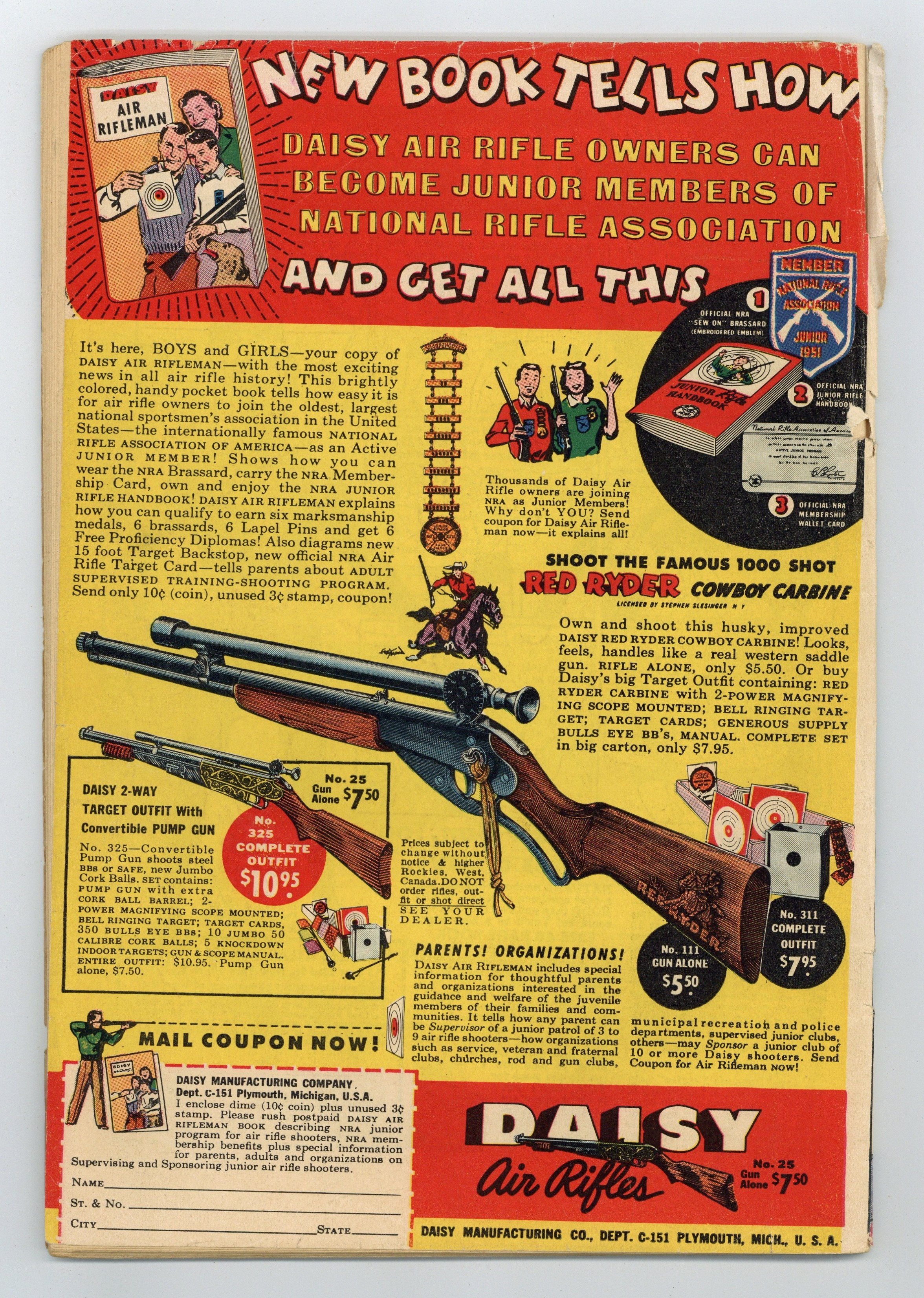 Cover by Win Mortimer. Stories by David Vern and unknown. Art by Dick Sprang, Charles Paris, Leonard Starr, Frank Bolle and Ruben Moreira. Racketeer Deuce Chalmers has figured out that Bruce Wayne is Batman...the trouble is, how does he prove it? And Bruce has troubles as well with his secret identity since he has been appointed temporary Mayor of Gotham City! Don't miss Batman and Robin in "Mayor Bruce Wayne!" by David Vern, Dick Sprang and Charles Paris. Plus: Pow-Wow Smith, Indian Lawman in "The Reforming of Little Elk" with art by Leonard Starr; Robotman in "Robotman Crusoe" with art by Frank Bolle; and Impossible -- But True! tale "The Luckiest Man on Earth!" (featuring Roy Raymond) with art by Ruben Moreira. Also: Quick Quiz activity page by H.T. Elmo; 1-page text piece "Frontier Photographer"; Casey the Cop half-pager by Henry Boltinoff; Shorty half-pager by Boltinoff; and 1-page text story "Missouri Marathon." 44 pages, full color. Cover price $0.10.