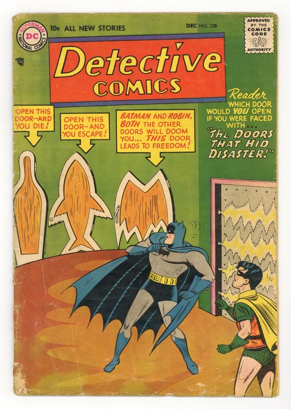 Cover art by Sheldon Moldoff. Search for a New Robin starring Batman and Robin, pencils by Sheldon Moldoff, inks by Charles Paris. Special Election Exhibit public service announcement starring Binky, art by Bob Oksner. Fingers of Flame starring Roy Raymond TV Detective, art by Ruben Moreira. The Sleuth Who Went to Jail starring John Jones Manhunter from Mars, art by Joe Certa. 36 pgs. $0.10. Cover price $0.10.