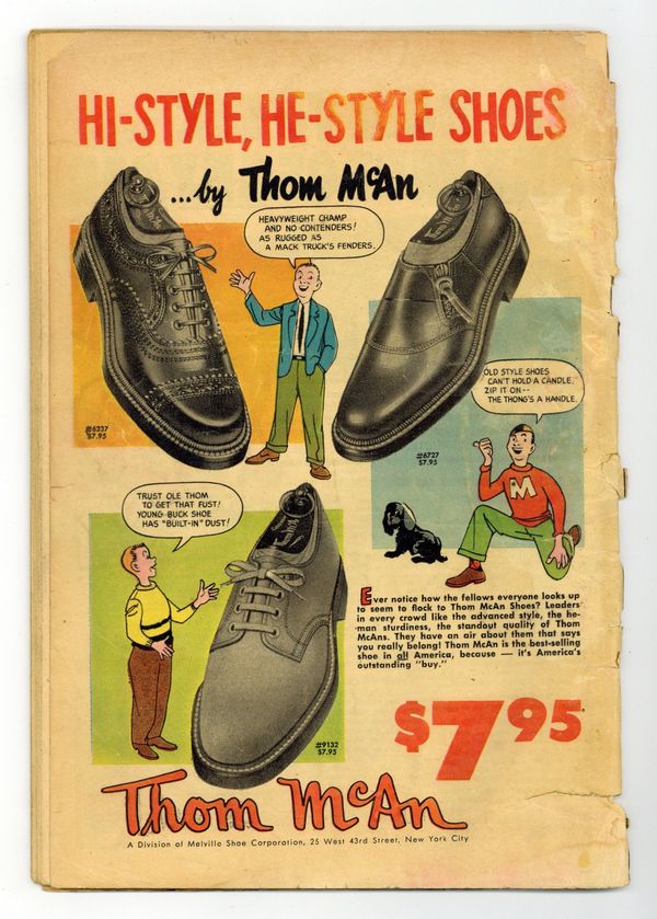 Cover art by Win Mortimer. Don't Give Fire a Place to Start! public service announcement starring Superboy, script by Jack Schiff, art by Win Mortimer. The Man Who Shadowed Batman! starring Batman and Robin, script by France Herron, pencils by Dick Sprang (as Bob Kane), inks by Charles Paris. The Doubles of Doom! starring Roy Raymond TV Detective, art by Ruben Moreira. The Case of the Cowardly Crew! starring Captain Compass, script by Otto Binder, art by Joe Certa. Whiz Cop article by Jack Miller (as Joe Masters). The Three Feats of Peril! starring Mysto Magician Detective, art by Leonard Starr. 44 pgs. $0.10. Cover price $0.10.