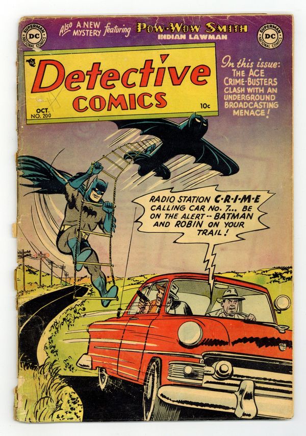 Cover by Win Mortimer. Stories by unknown. Art by Lew Sayre Schwartz, Charles Paris, Leonard Starr, Joe Certa and Ruben Moreira. Batman and Robin clash with an underground broadcasting menace in "Radio Station C-R-I-M-E!" with art by Lew Sayre Schwartz and Charles Paris. Plus: Pow-Wow Smith, Indian Lawman in "The Unwilling...Witness!" with art by Leonard Starr; Robotman in "Superstitious Robot!" with art by Joe Certa; and Impossible -- But True! tale "The Maker of Mental Giants!" (featuring Roy Raymond) with art by Ruben Moreira. Also: Casey the Cop half-pager by Henry Boltinoff; Peg 1-pager by Boltinoff; and 2-page text piece "Calling All Cars!" by Jack Miller. 44 pages, full color. Cover price $0.10.