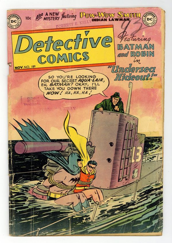 Cover by Win Mortimer. Stories by unknown. Art by Dick Sprang, Charles Paris, Leonard Starr, Ruben Moreira and unknown. Batman and Robin look for a secret aqua-lair in "The Undersea Hideout!" with art by Dick Sprang and Charles Paris. Plus: Pow-Wow Smith, Indian Lawman in "Trial in Red Deer Valley!" with art by Leonard Starr; Robotman in "The Golden Robot!"; and Impossible -- But True! tale "Mr. Zero!" (featuring Roy Raymond) with art by Ruben Moreira. Also: Casey the Cop half-pager by Henry Boltinoff; Shorty 1-pager by Boltinoff; and 2-page text piece "Crime Across the Border" by Jack Miller (as Jim Montross). 44 pages, full color. Cover price $0.10.