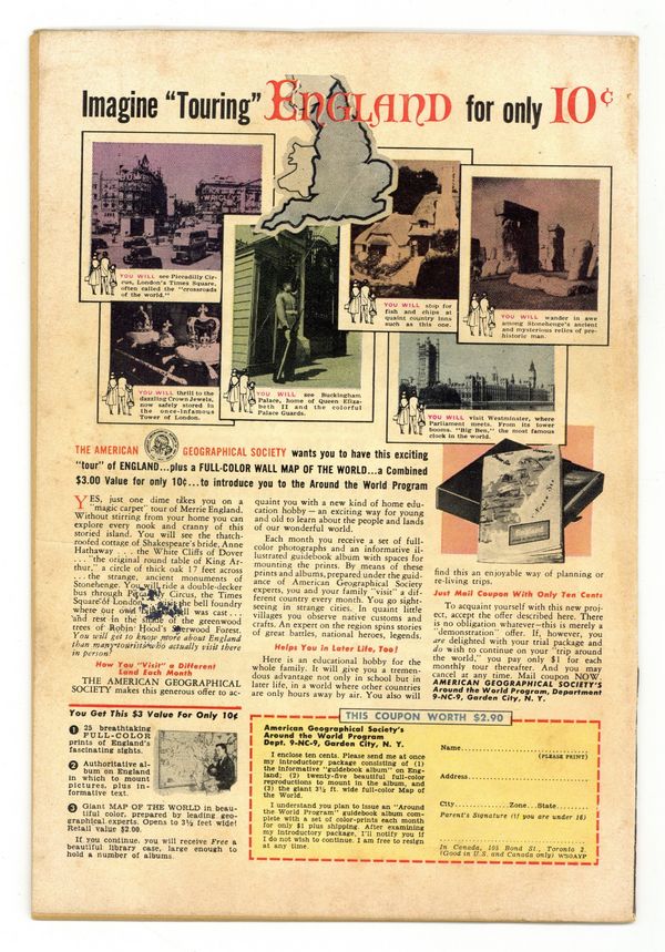 Cover art by Win Mortimer. The Batman Encylopedia starring Batman and Robin, pencils by Sheldon Moldoff, inks by Charles Paris. Know Your Country public service announcement starring Superboy, script by Jack Schiff, art by Win Mortimer. The Island That Was a Ship! starring Captain Compass, script by Otto Binder, art by Joe Certa. Casey the Cop humor page by Henry Boltinoff. The Amazing Mr. Hercules! starring Roy Raymond TV Detective, art by Ruben Moreira. 36 pages, full color. Cover price $0.10.