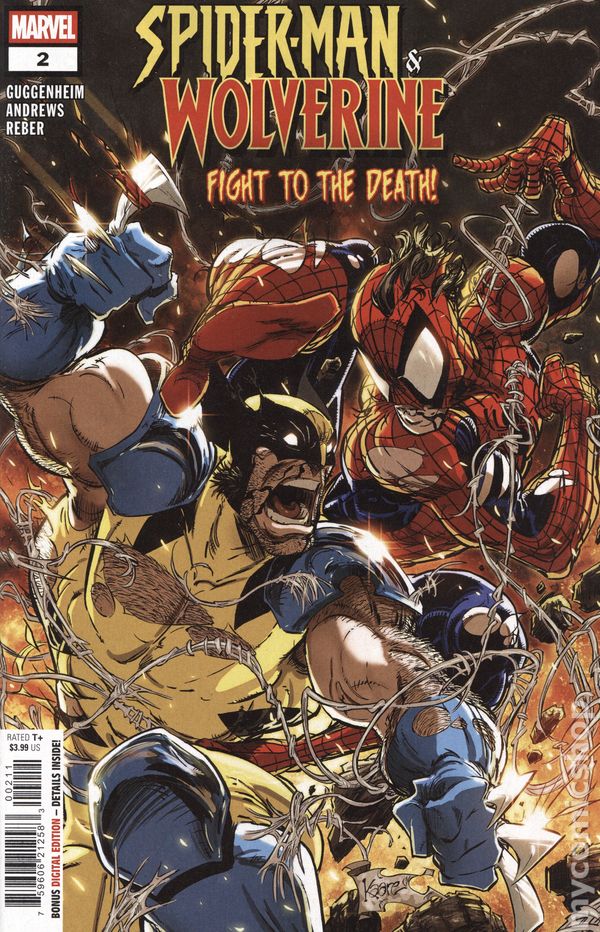 Written by Marc Guggenheim. Art by Kaare Andrews. Cover by Kaare Andrews. SPIDER-MAN VERSUS WOLVERINE! You read that right! The inaugural issue's surprise leads to this throwdown for the ages: SPIDER-MAN VERSUS WOLVERINE! But what terrible revelation could possibly pit PETER PARKER against LOGAN for all the marbles? Not mind control, not an illusion - you'll have to read it to experience it! 28 pages, full color. Rated T+ Cover price $3.99.