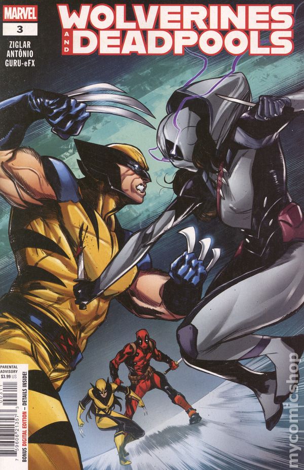 Written by Cody Ziglar. Art by Roge Antonio. Cover by Alessandro Cappuccio. ELLIE BREAKS BAD! The SHADOW KING has his hooks in ELLIE CAMACHO, A.K.A. DEADPOOL. Is this the end of the DEADPOOL family? And are the WOLVERINES the ones to finish it? It's the grand finale of writer Cody Ziglar's epic tale! 28 pages, full color. Rated Parental Advisory Cover price $3.99.