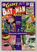 Tags: Batman$26.00Summer 1963. All reprints. Cover pencils by Sheldon Moldoff and Dick Sprang, inks by Charles Paris and Stan Kaye. "The Power that Doomed Batman," script by Bill Finger, pencils by Sheldon Moldoff (ghost for Bob Kane), inks by Charles Paris; Batman takes up a plane on an experimental flight, and, after crossing through the tail of a comet, finds himself glowing strangely and endowed with super powers. "The Merman Batman," script by Bill Finger, pencils by Sheldon Moldoff (ghost for Bob Kane), inks by Charles Paris; While chasing down a wanted criminal, Batman is struck by lightning and falls into the harbor. "Rip Van Batman," script by Bill Finger, pencils by Sheldon Moldoff (ghost for Bob Kane), inks by Charles Paris; Looking for criminal Al Hackett, Batman enters a greenhouse; After succumbing to the strange floral vapors, he passes out; On awakening, he finds himself in the future. "The Zebra Batman," script by Bill Finger, pencils by Sheldon Moldoff (ghost for Bob Kane), inks by Charles Paris; An insideous criminal discovers a way to charge his body like a magnet to commit crimes, but Batman, in trying to stop him, accidently becomes charged as well. "The Grown-Up Boy Wonder," script by Bill Finger, pencils by Sheldon Moldoff (ghost for Bob Kane), inks by Stan Kaye; While examining a lead-lined box Superman had brought back from outer space, Dick accidently touches a release, emitting a gas that causes him to grow bodily into manhood, thus forcing him to give up his Robin persona and to adopt a different crime fighting ID--The Owlman. "The Bewitched Batman," script by Jerry Coleman, pencils by Curt Swan. "The Phantom Batman," script by Edmond Hamilton, pencils by Dick Sprang, inks by Charles Paris. "The Giant Batman," script by Edmond Hamilton, pencils by Dick Sprang, inks by Charles Paris. 84 pgs., full color. Cover price $0.25.