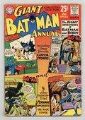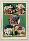 Summer 1963. All reprints. Cover pencils by Sheldon Moldoff and Dick Sprang, inks by Charles Paris and Stan Kaye. "The Power that Doomed Batman," script by Bill Finger, pencils by Sheldon Moldoff (ghost for Bob Kane), inks by Charles Paris; Batman takes up a plane on an experimental flight, and, after crossing through the tail of a comet, finds himself glowing strangely and endowed with super powers. "The Merman Batman," script by Bill Finger, pencils by Sheldon Moldoff (ghost for Bob Kane), inks by Charles Paris; While chasing down a wanted criminal, Batman is struck by lightning and falls into the harbor. "Rip Van Batman," script by Bill Finger, pencils by Sheldon Moldoff (ghost for Bob Kane), inks by Charles Paris; Looking for criminal Al Hackett, Batman enters a greenhouse; After succumbing to the strange floral vapors, he passes out; On awakening, he finds himself in the future. "The Zebra Batman," script by Bill Finger, pencils by Sheldon Moldoff (ghost for Bob Kane), inks by Charles Paris; An insideous criminal discovers a way to charge his body like a magnet to commit crimes, but Batman, in trying to stop him, accidently becomes charged as well. "The Grown-Up Boy Wonder," script by Bill Finger, pencils by Sheldon Moldoff (ghost for Bob Kane), inks by Stan Kaye; While examining a lead-lined box Superman had brought back from outer space, Dick accidently touches a release, emitting a gas that causes him to grow bodily into manhood, thus forcing him to give up his Robin persona and to adopt a different crime fighting ID--The Owlman. "The Bewitched Batman," script by Jerry Coleman, pencils by Curt Swan. "The Phantom Batman," script by Edmond Hamilton, pencils by Dick Sprang, inks by Charles Paris. "The Giant Batman," script by Edmond Hamilton, pencils by Dick Sprang, inks by Charles Paris. 84 pgs., full color. Cover price $0.25.