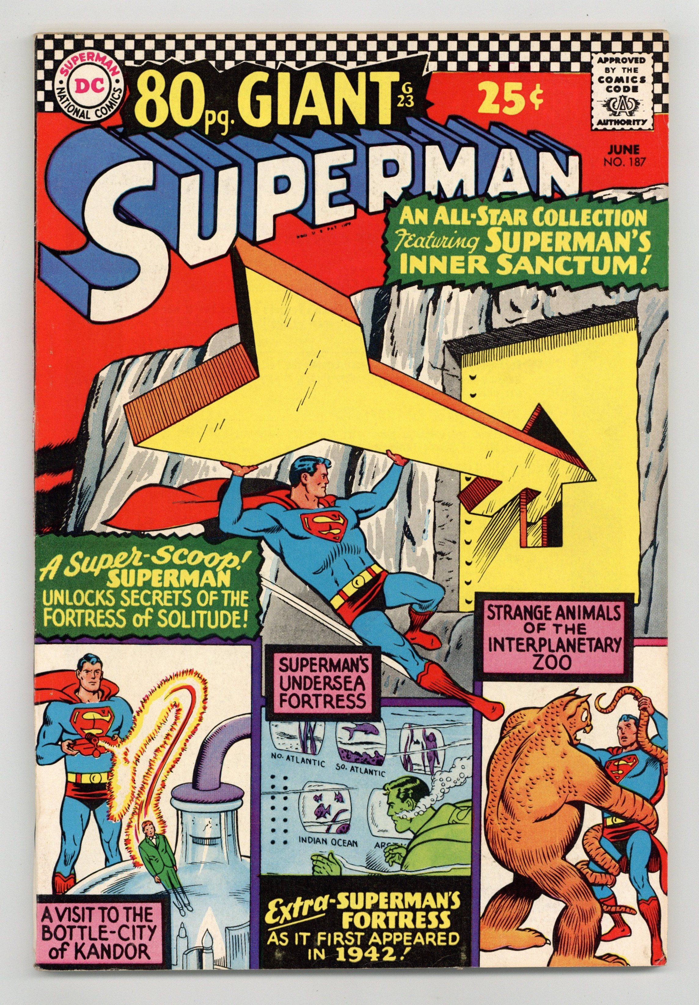 Tags: Superman$16.50Cover pencils by Curt Swan, inks by George Klein. Two-part story in which Superman battles beings of air, water, fire, and earth: The Four Element Enemies! [part 1], script by Jim Shooter, art by Wayne Boring. Fight With the Fearsome Foursome! [part 2]. Super-Turtle humor page by Henry Boltinoff. 36 Pages, Full Color. Cover price $0.12.