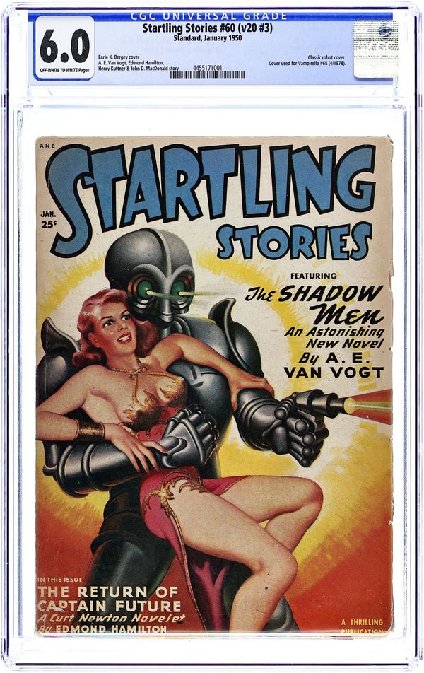 Volume 20, Issue 3 - January, 1950. Cover by Earle Bergey. Stories by A.E. Van Vogt, Edmond Hamilton, Kelvin Kent, William Morrison, L. Ron Hubbard (under pseudonym Rene LaFayette), Margaret St. Clair, J.W. Groves, and John D. MacDonald. 6.75-in. x 9.75-in.; black and white; 166 pages. Cover price $0.25.