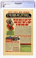 Cover by Myron Fass. Stories and art by Ellis Eringer, Sal Trapani, Medio Iorio and Myron Fass. Pre-Code horror comics from Toby Press. Professor Lenox's charm school for girls turns out to be abducting women and replacing them with slaves of Satan. Tuscan peasant Alberto betrays the witch who aided him, but he forgot that witches often have covens. The corpse at a funeral thinks back on how each of his pallbearers led him to his untimely death. Welcome to My School; Fate of Alberto; Highway Rubout; The Pallbearers; Poison-Quill at Midnight. 32 pages, Full Color. Cover price $0.10.