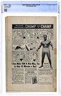 Cover by Jack Kirby and George Roussos. Showdown With the Human Top!, script by Stan Lee, art by Jack Kirby and Dick Ayers; Human Top steals civil defense plans and wants to sell them to the Communists. The Sorcerer text story, art by Joe Maneely; A man who has travelled the world and seen wonders performed by hermits in India returns home to find that his young nephew creates magic with only belief. No Place to Turn!, script by Stan Lee and Larry Lieber, art by Larry Lieber and Matt Fox; Aliens transform a spy into a human, but because they can only receive black-and-white images from Earth they leave him green and he is discovered. Somewhere Waits a Wobbow!, script by Stan Lee and Larry Lieber, art by Larry Lieber and George Roussos [as G. Bell]; The Wasp tells the tale of future mercenary pilot Rack Morgan who disobeys the rules once too many. 36 pgs., full color. $0.12. Cover price $0.12.
