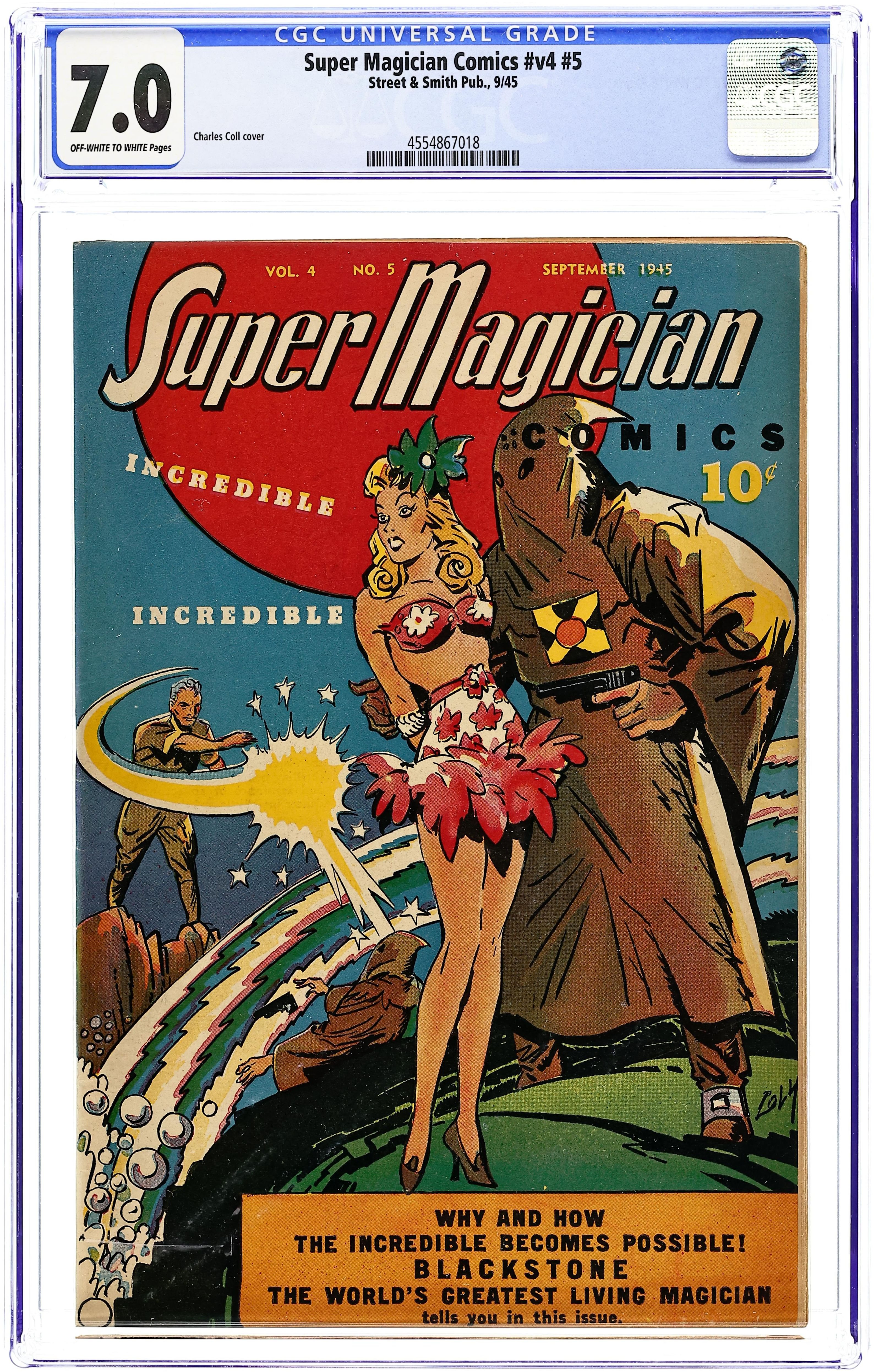 ### "Blackstone Defies the Masked Miller," "Blackstone Explains More Magic Tricks for Tom and Dick," Red Dragon in "Komodo Goes A'Courting," Lady in White in "Double-Header," and "Blackstone Outwits Dalban the Dervish." Cover price $0.10.