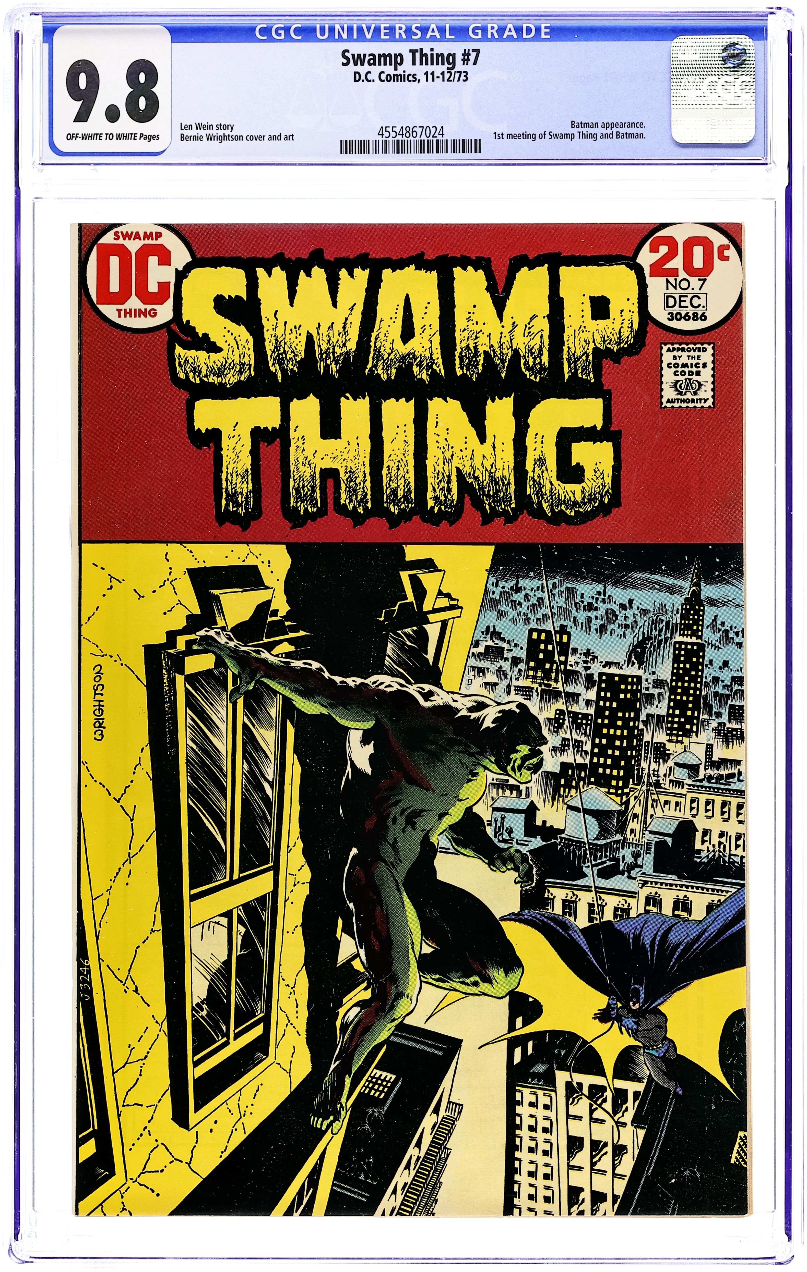 "Night of the Bat." Swamp Thing goes to Gotham City and encounters Batman. Both are after Mr. E, who is leader of the Conclave. Script by Len Wein, art and cover by Berni Wrightson. Cover price $0.20.