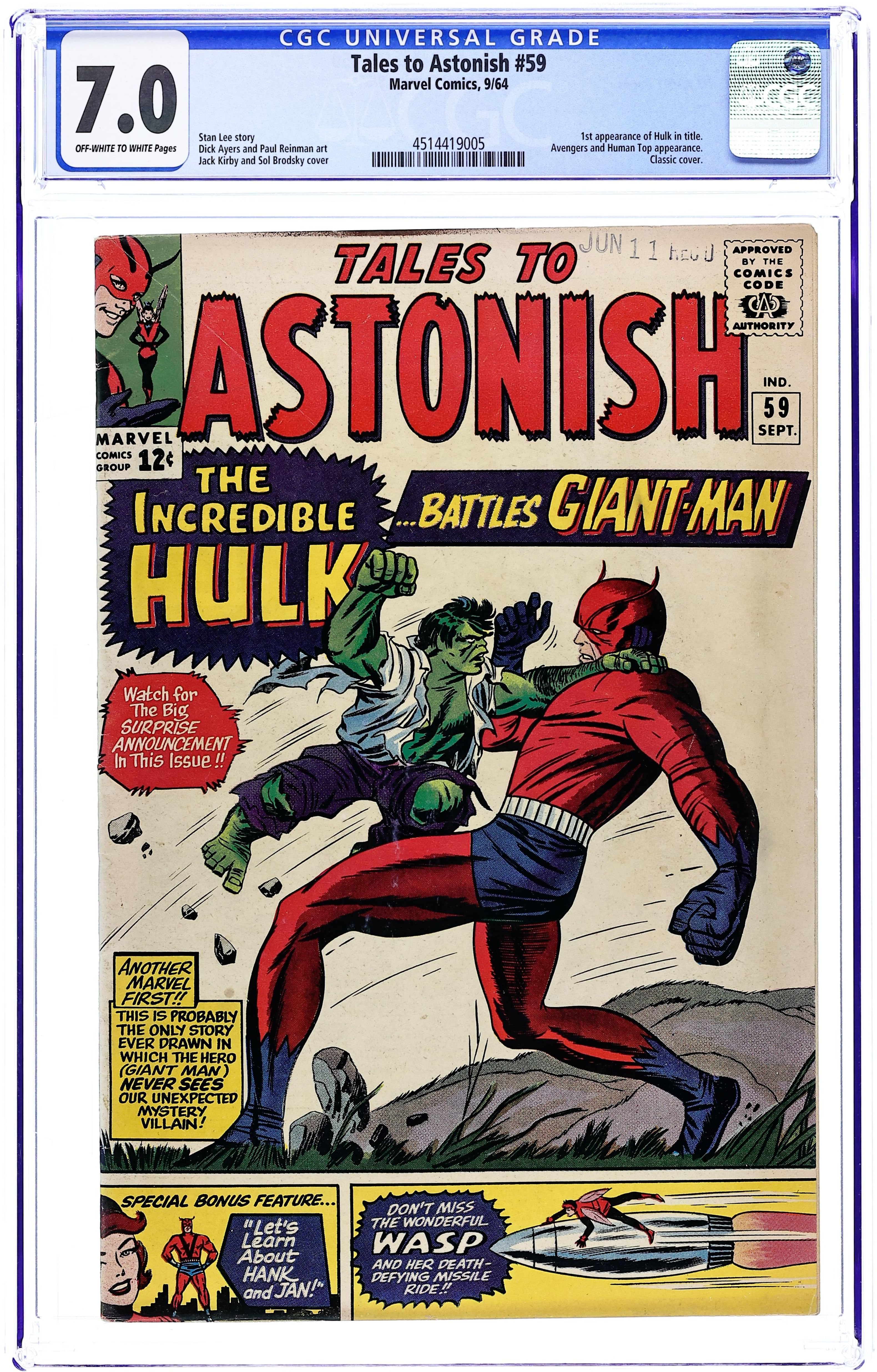 The Hulk battles Giant-Man in "Enter: The Hulk!" Script by Stan Lee, pencils by Dick Ayers, inks by Paul Reinman. Guest appearances by Thor, Iron Man, and Captain America. Spider-Man cameo. This is the Hulk's first appearance in this title. Back-up feature, "Let's Learn About Hank and Jan!" Script by Lee, pencils by Ayers, inks by Reinman. Jack Kirby/Sol Brodsky cover. 36 pgs. Cover price $0.12.