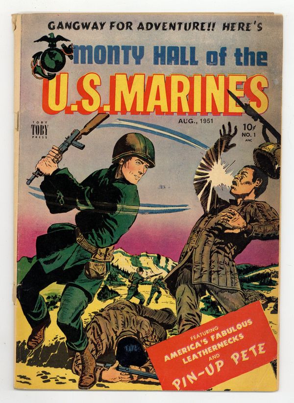 Cover by Mel Keefer. Stories and art by Mel Keefer, Steve Bobb and Jack Sparling. US Marine Monty Hall (no relation to the game-show host) fights for America during the Korean War. A look at basic training for the US Marines during the post-WWII era, as Monty goes through the process.When a corrupt native leader uses a ceremonial mask to intimidate with threats of magic, Monty decides two can play that game. Marine "Pin-Up Pete" discusses women he has known, an excuse to present four full-page pin-ups featuring good-girl art by Jack Sparling. Plus a vintage ad for Orange Crush featuring Li'l Abner and the Shmoo. Boots; The Devil's Mask; Monty Hall Meets Murder; The City of Flame; Pin-Up Pete. 36 pages, full color. Cover price $0.10.