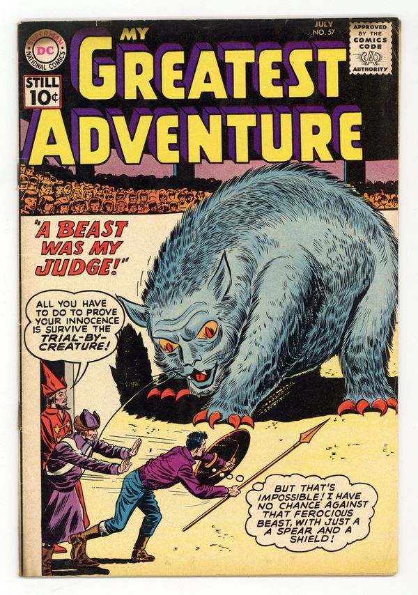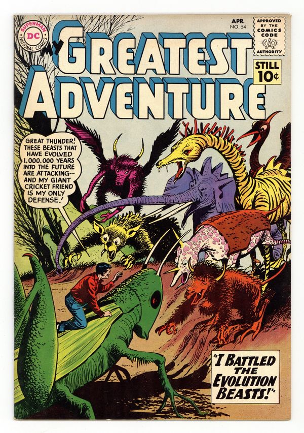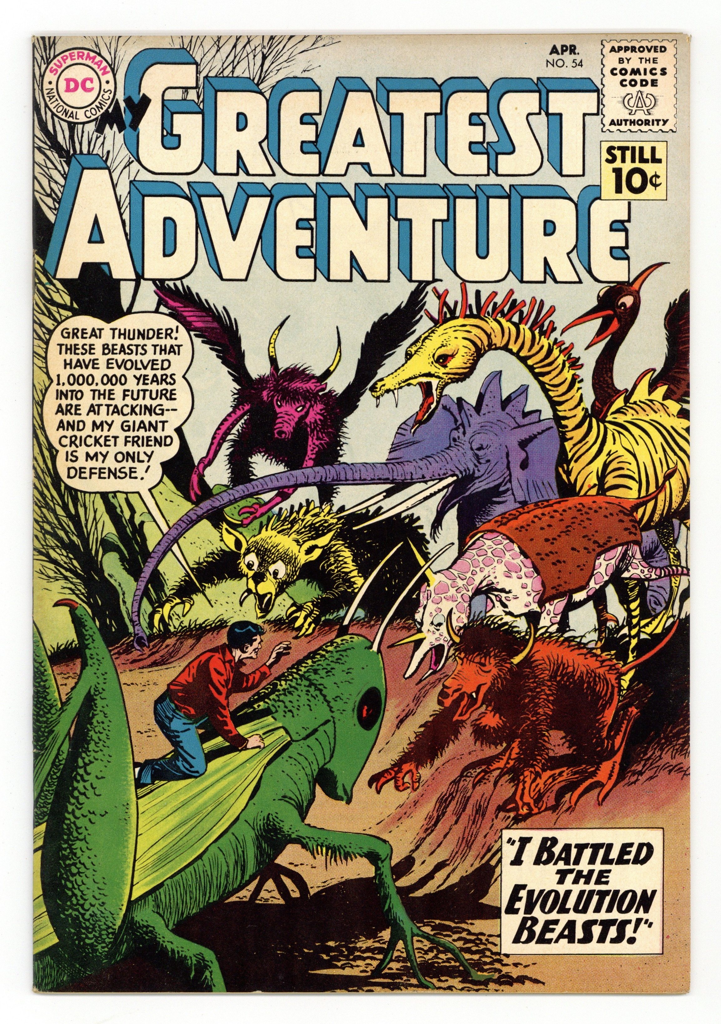 Cover pencils by Dick Dillin, inks by Sheldon Moldoff. I Was Cursed with an Alien Pal, script by Jerry Coleman, art by Lee Elias; When a man saves the life of an alien, the alien uses his super-science to help the man but causes lots of problems. Peter Puptent Explorer humor page by Henry Boltinoff. I Became the Idol of Isoris, art by Howard Purcell; An actor is enlisted to portray a legendary warrior to help stop a revolution in the country of Sidonia. Amazing Animal Eyes article by Julius Schwartz, pencils by Morris Waldinger, inks by Tommy Nicolosi. I Braved the River of Doom text story. I Battled the Evolution Beasts, art by Bernard Baily; A scientist conducting an experiment to see through time accidentally releases monsters from the future. 36 Pages, Full Color. Cover price $0.10.