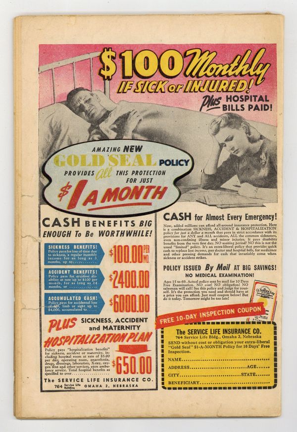 Published Aug 1951 by Toby Press.$26.00- Cover detached at one staple.