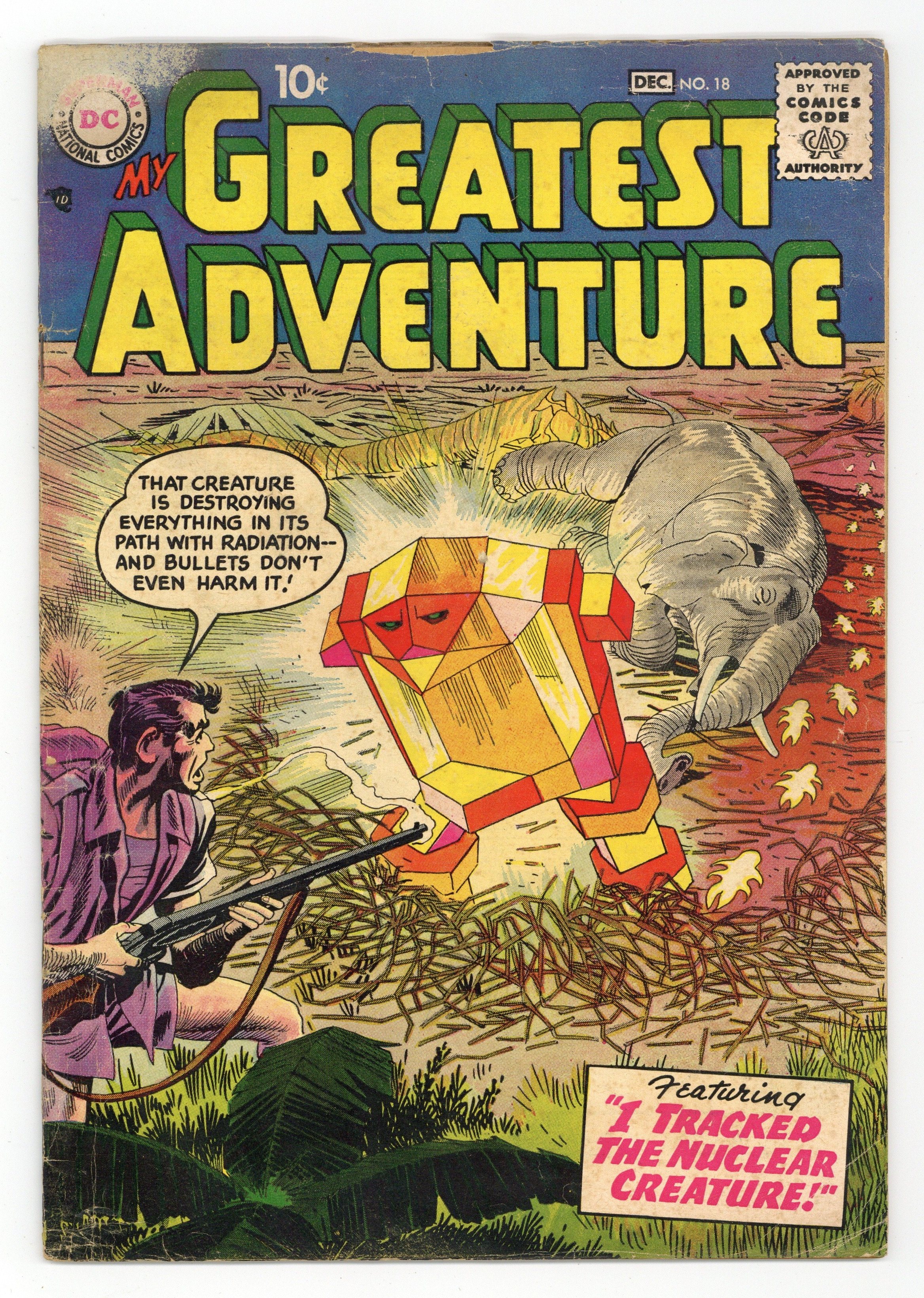 "We Discovered the Edge of the World" (art by Nick Cardy), "I Was a Prisoner in the House of Secrets," "Galloping Ghost," "I Tracked the Nuclear Creature" (pencils by Jack Kirby), and a one-page text story, "Mystery of the Spectral Lights." Kirby cover. 36 Pages, Full Color. Cover price $0.10.