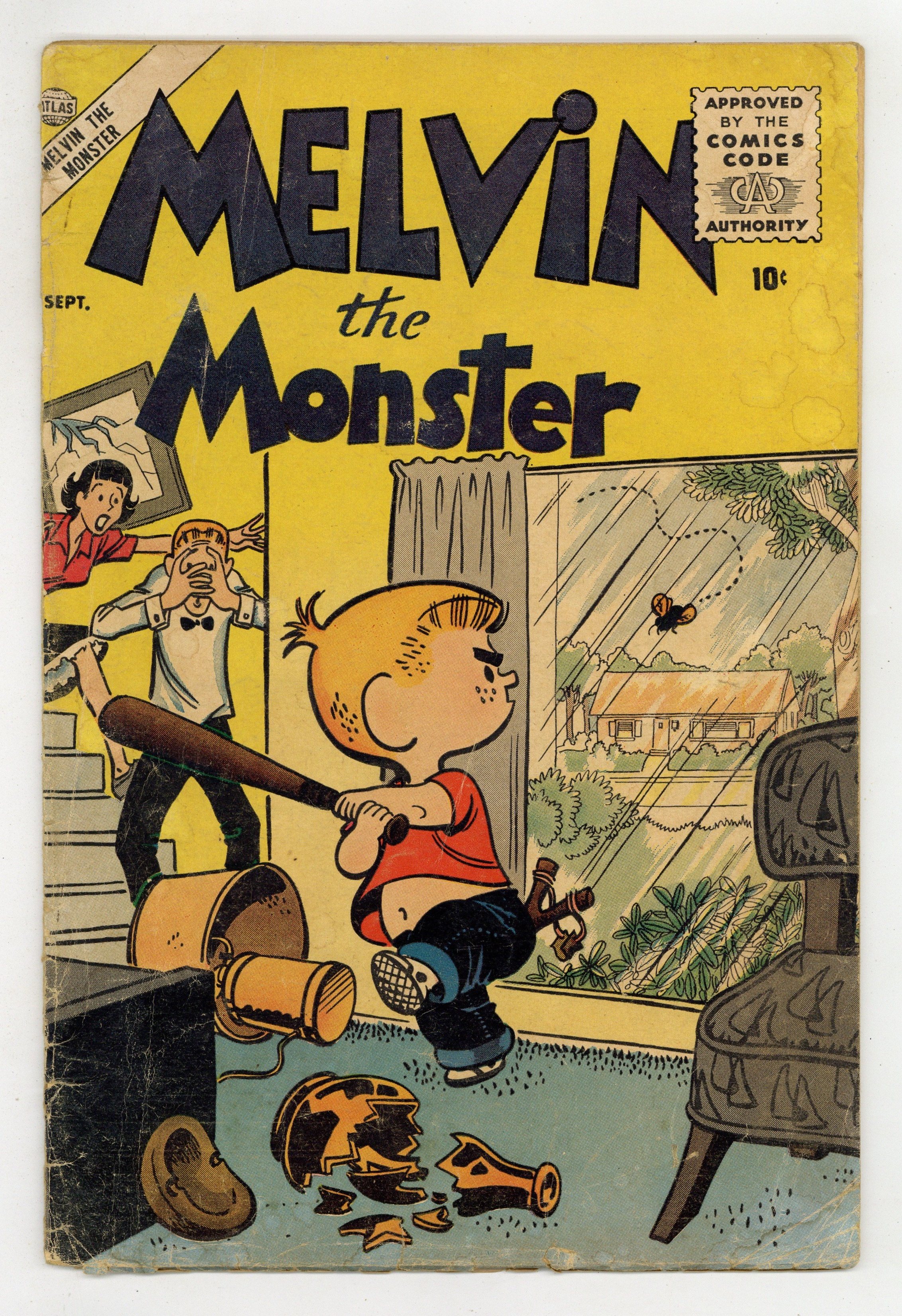 Cover art by Gene Colan. Kill Me a Monster, art by Paul Reinman; A professor hires an assassin to kill creatures who possess the bodies of men. Blood Relation, art by Ed Winiarski; This story postulates that love can cure hereditary vampirism. The Fangs of the Wolf, art by Bill Everett; A man who shoots dogs for fun is bitten by a werewolf; He even has hired a sharpshooter to kill any strays that might venture onto his property, but he regrets this action when he changes to wolf form and his hired hand shoots him. Symphony in Death, art by Joe Maneely; When a music critic steals a work from a composer and passes it off as his own, the composer attaches a rope to a phonograph and strangles the critic slowly by playing the recording. The Walking Dead, art by John Forte; A zombie tries to eat a man but is tricked into a crematory chamber. 36 pgs. $0.10. Cover price $0.10.