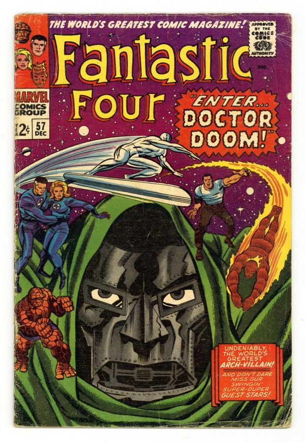 Cover pencils by Jack Kirby, inks by Dick Ayers. Dr. Doom and the Sub-Mariner team up (first Marvel villian team-up and second Silver Age Sub-Mariner appearance) in "Captives of the Deadly Duo!" Part 1, script by Stan Lee, pencils by Jack Kirby, inks by Dick Ayers; Doctor Doom presents himself to Sub-Mariner and offers him an alliance against the Fantastic Four and all mankind. When Super-Menaces Unite Part 2; Dr. Doom gives a "Grabber" to Sub-Mariner and Human Torch discovers that Invisible Girl hides a photo of the Sub-Mariner in a book. Part 3 When Friends Fall Out!; The Sub-Mariner plants the "Grabber" in the Baxter Building and it is lifted into space by Doctor Doom. Part 4 Trapped!; The Baxter Building is set on a collision course with the Sun and the Sub-Mariner discovers that Doctor Doom has betrayed him. Part 5 The End... or the Beginning?; Doctor Doom is flung out into space and the Baxter Building is returned to its foundation. First mention of "unstable molecules." 36 pgs. $0.12. Cover price $0.12.