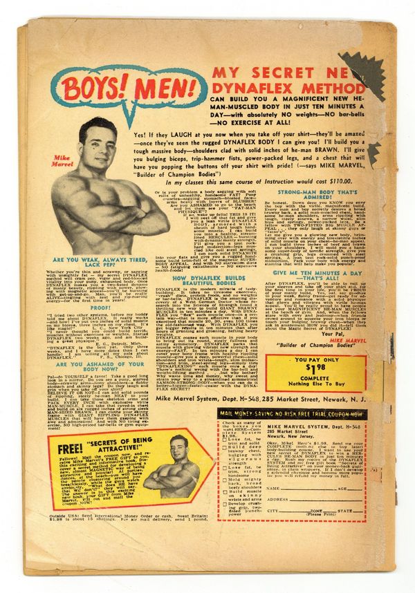 Stories and art by Robert Webb and others. Pre-Code tales of horror and the supernatural from Ajax-Farrell. Nerdy Wilbur gets the power to make his dreams come true, and he doesn't even know it. The descendant of the iron maiden's inventor is haunted by the torture device's victims. A woman is possessed by the spirit of a witch after relocating to Salem, Massachusetts. If a Body Kill a Body; Deadly Wish; Secret Coffin; Broom for a Witch. Final issue under this title; numbering continues with Fantastic Comics (1954 Ajax) #10. 32 pages, Full Color. Cover price $0.10.