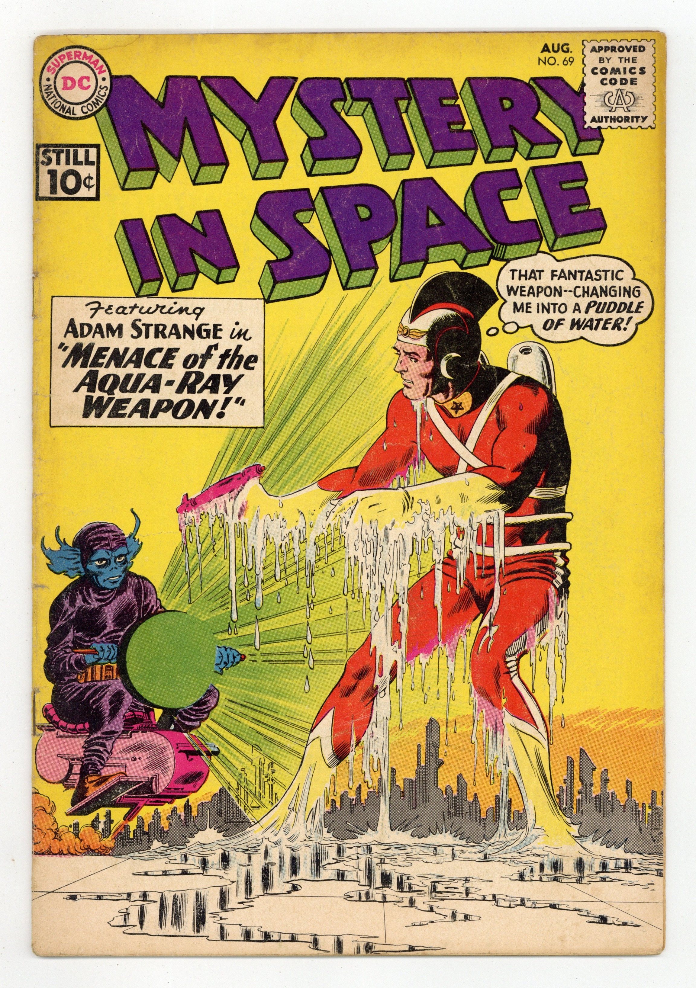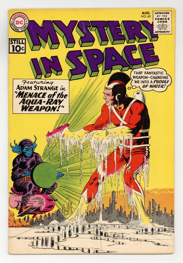 Adam Strange stars in "Menace of the Aqua-Ray Weapon!" (pencils by Carmine Infantino). Back-up stories: "Duel of the Star Gladiators!" and "What Happened on Sirius-4?" (art by Sid Greene?). Infantino cover pencils. 36 Pages, Full Color. Cover price $0.10.