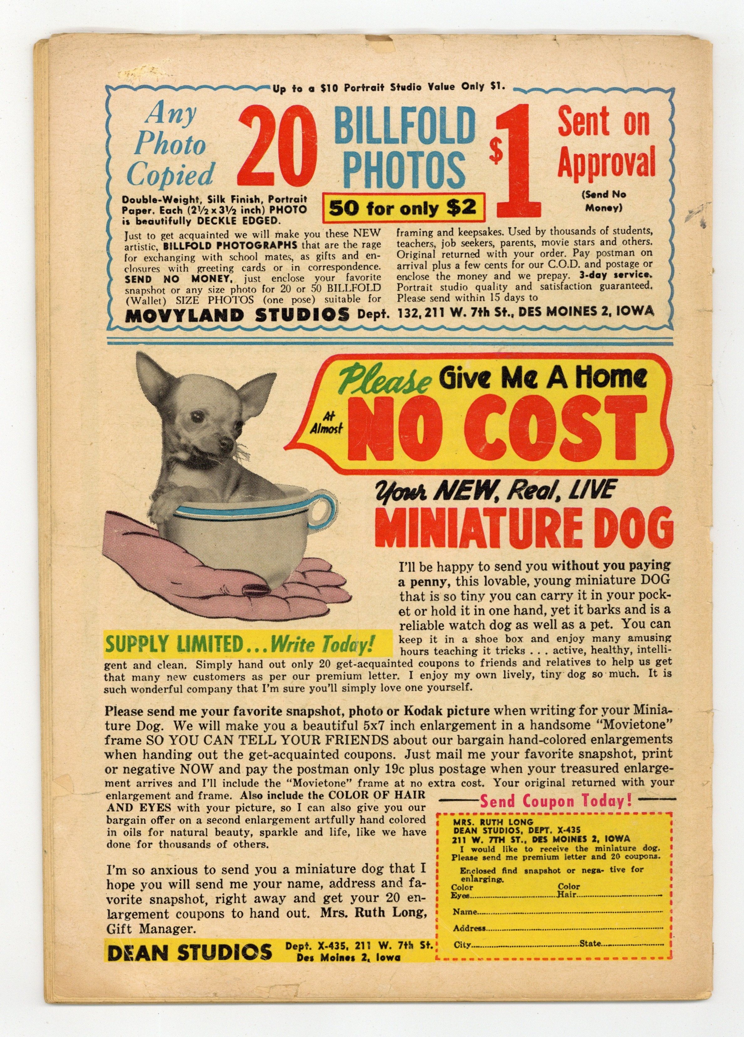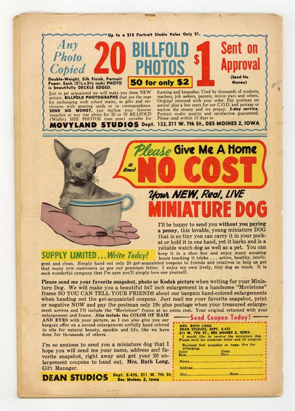Published Oct 1949 by Superior Comics.$30.00- Water damage.